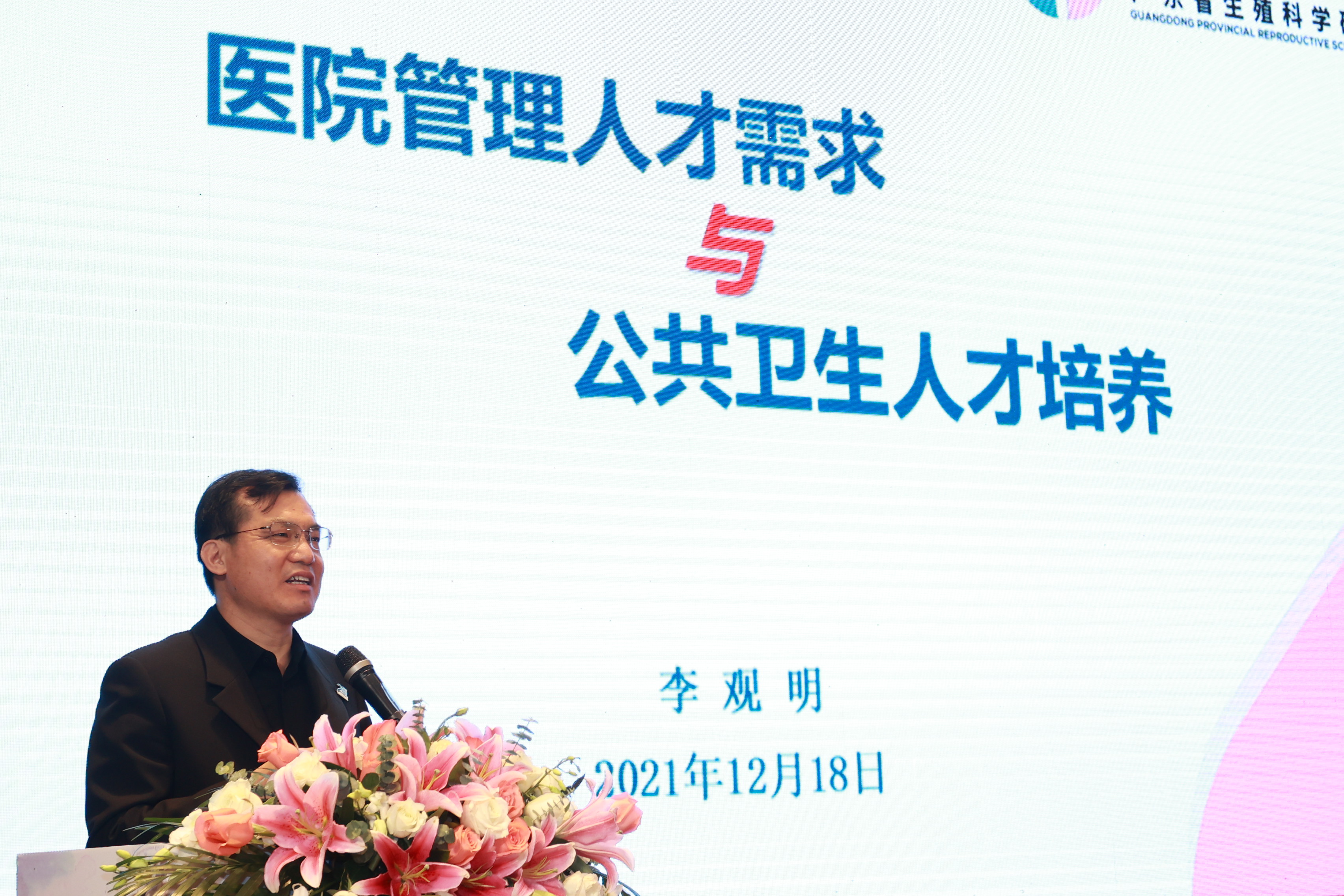 广东省生殖医院党委书记、院长李观明先生作《医院管理人才需求与公共卫生人才培养》的报告。他介绍了医院管理人才队伍存在的主要问题,医院管理的职业化、专业化、规范化、多样化发展趋势、急迫需求和公共卫生人才培养新方向。