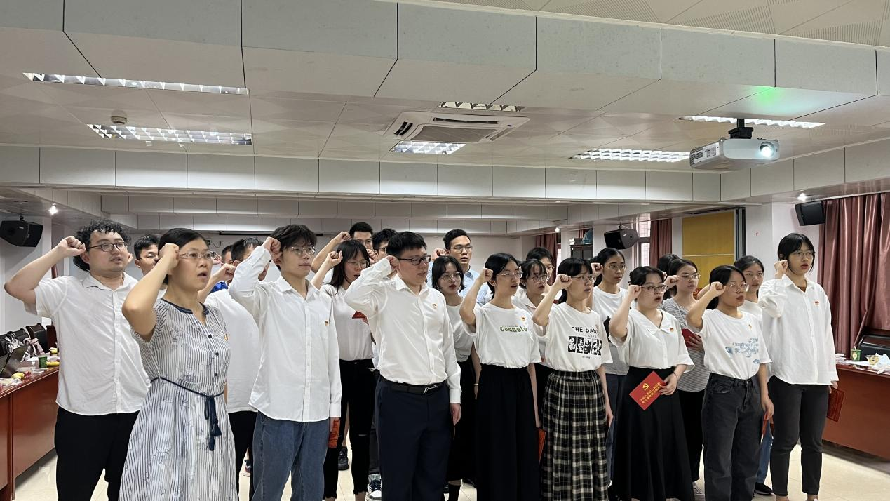 随后,党支部书记谢金华老师带领全体毕业生党员重温入党誓词,面对鲜红的党旗,党员们庄严宣誓,重温入党时的初心和使命,在思想上再一次接受洗礼。