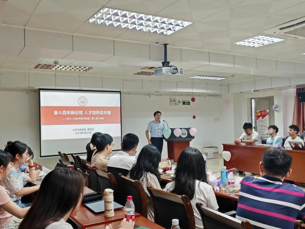为扎实推进学习贯彻习近平新时代中国特色社会主义思想主题教育工作,聚焦医药卫生健康治理,培养管医文综合融通、具有国际视野的公共管理专门人才,进一步了解毕业生动态,上好毕业生在校最后一课,扣好入职第一粒扣子,提高育人实效,6月27日下午,卫生管理学系专任教师党支部联合研究生党支部在公卫楼侧三会议室举行“理想信念薪火传,同心筑梦谱新篇”2023届毕业生座谈会主题党日活动。本次活动主题聚焦“研究生培养”,坚持以学生成长为中心,推进卓越研究生培养,提升高层次创新型人才自主培养质量,特别邀请党委书记范瑞泉同志、陈少贤教授莅临座谈会,教师代表、毕业生代表和卫管系全体在读研究生参加会议,卫管系专任教师党支部副书记杨廉平副教授主持座谈会。