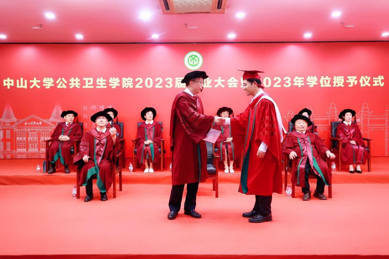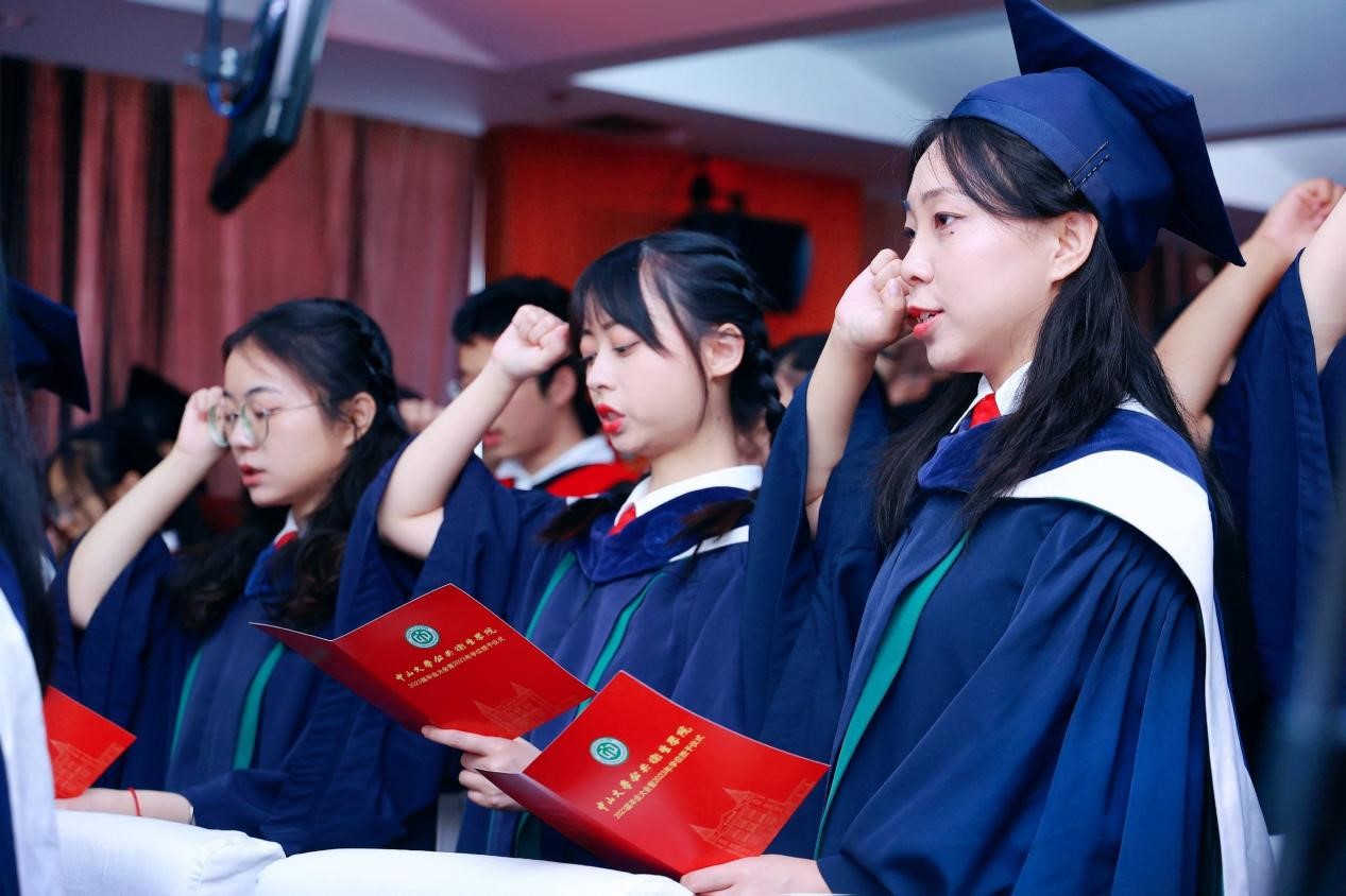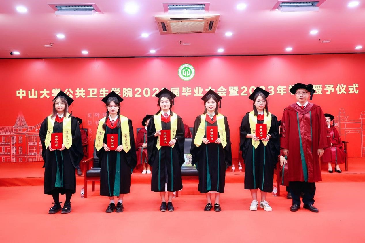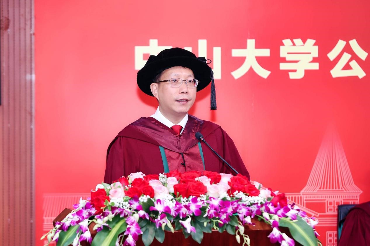 宣誓过后,两位优秀毕业生代表进行发言,一字一句都饱含着对母校师生的感激和直面未来的勇气。2018级本科生孙欣怡回忆了在中大公卫学院优质的学习资源、广阔的科研平台以及丰富的实践活动 ,将永远铭记“博学、审问、慎思、明辨、笃行”的校训,秉承中大公卫学院的优良传统,在青春的赛道上接力奋斗,在广阔的人生中发光发热,努力成长为专业素养过硬、堪当大任的领军人才。2020级硕士生陈锋在这三年来深刻地体会到了作为公卫人的责任。抗疫流调志愿队的服务经历与丰富的科研工作经历让他感受到了守卫公众健康的担当和公卫学子的使命。他呼吁同学们充分发扬公卫学院的优良传统,谨记校训和院训,踔厉奋发,砥砺前行,为祖国的公共卫生事业发展贡献出自己的一份力量。