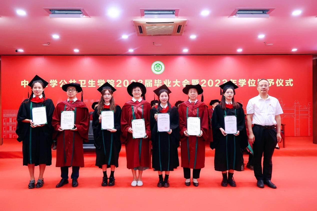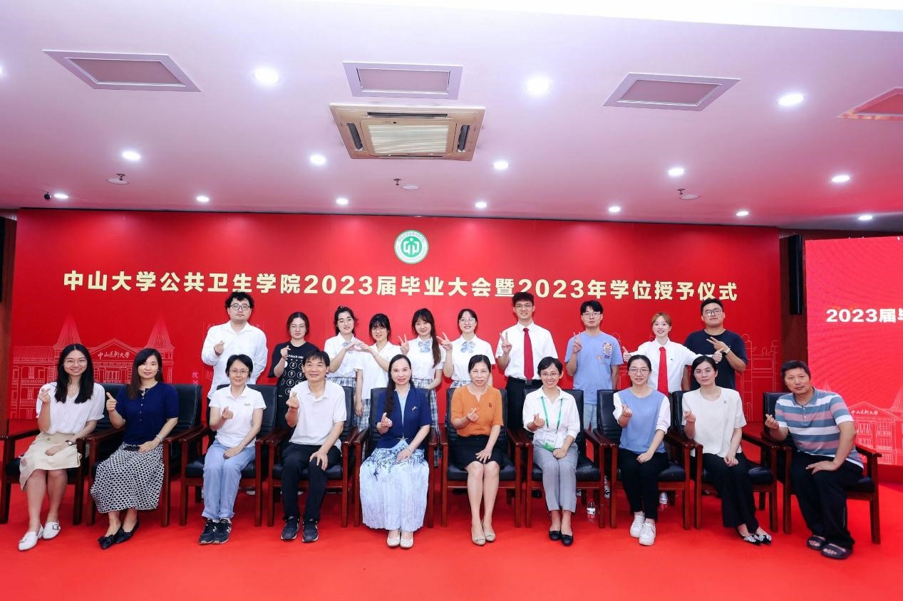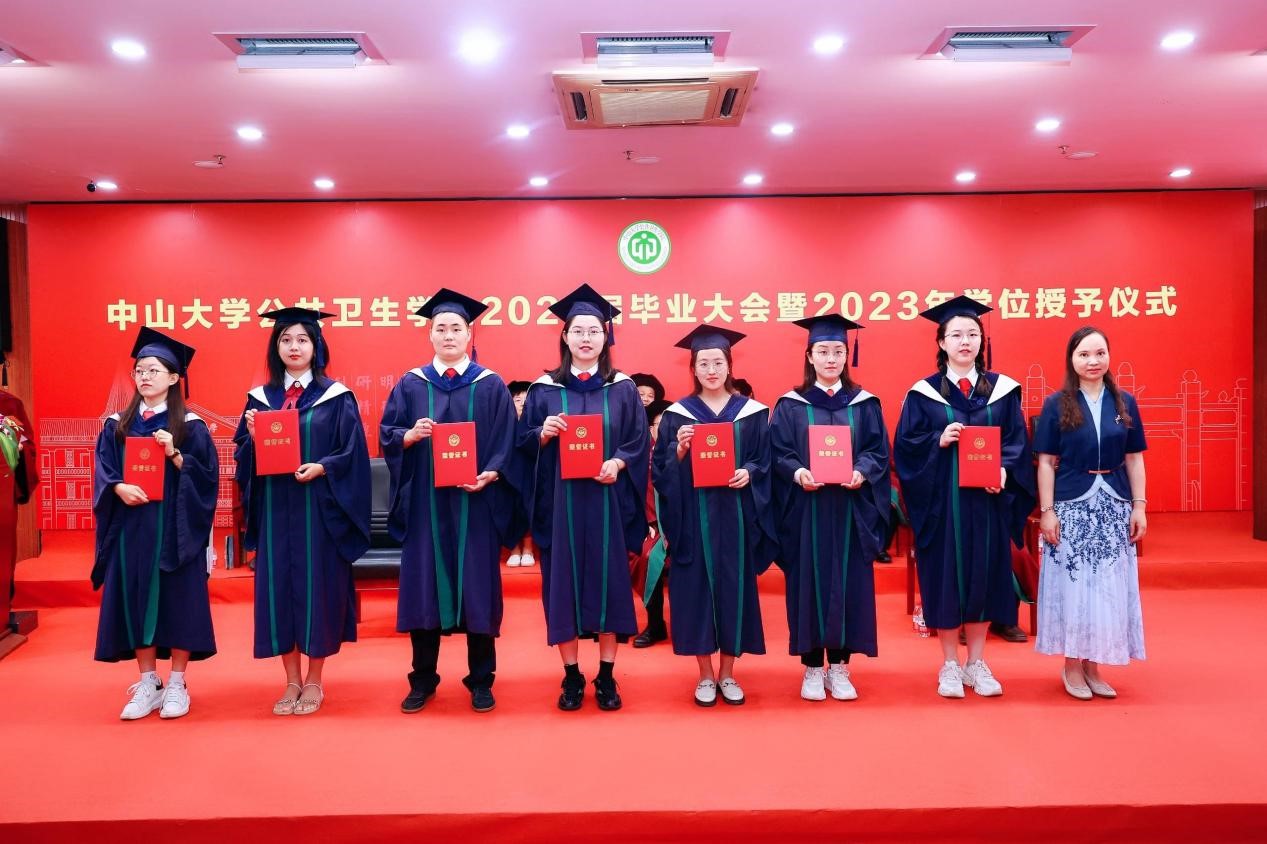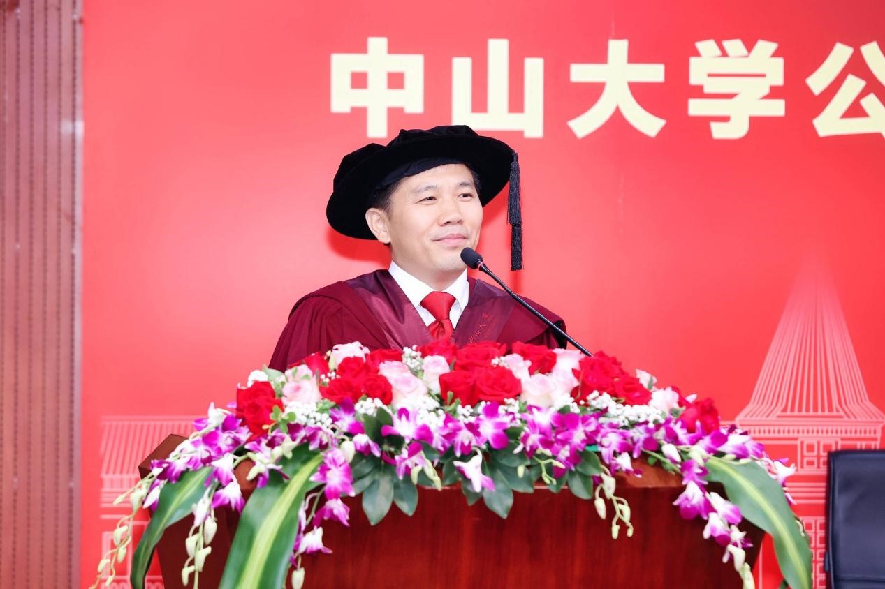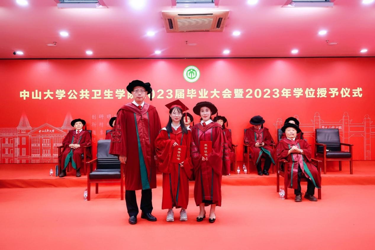 宣誓过后,两位优秀毕业生代表进行发言,一字一句都饱含着对母校师生的感激和直面未来的勇气。2018级本科生孙欣怡回忆了在中大公卫学院优质的学习资源、广阔的科研平台以及丰富的实践活动 ,将永远铭记“博学、审问、慎思、明辨、笃行”的校训,秉承中大公卫学院的优良传统,在青春的赛道上接力奋斗,在广阔的人生中发光发热,努力成长为专业素养过硬、堪当大任的领军人才。2020级硕士生陈锋在这三年来深刻地体会到了作为公卫人的责任。抗疫流调志愿队的服务经历与丰富的科研工作经历让他感受到了守卫公众健康的担当和公卫学子的使命。他呼吁同学们充分发扬公卫学院的优良传统,谨记校训和院训,踔厉奋发,砥砺前行,为祖国的公共卫生事业发展贡献出自己的一份力量。
