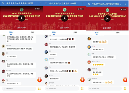 隆重庄严的毕业仪式让毕业生们再次深刻感受到母校的殷切教导和关心爱护,进一步巩固了他们为人类健康奋斗终生的理想和追求。通过线上与线下相结合的方式,毕业生的亲朋好友仿佛亲临现场,共同分享毕业的喜悦与收获的欢愉。线上直播互动中毕业生“亲友团”纷纷对学生、老师、学院和学校表达祝贺和感谢,喜气洋溢。