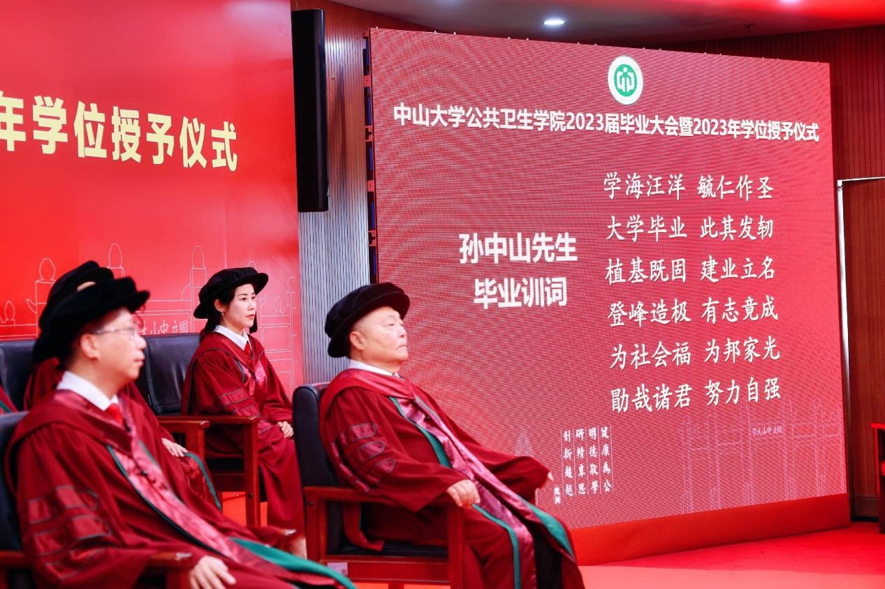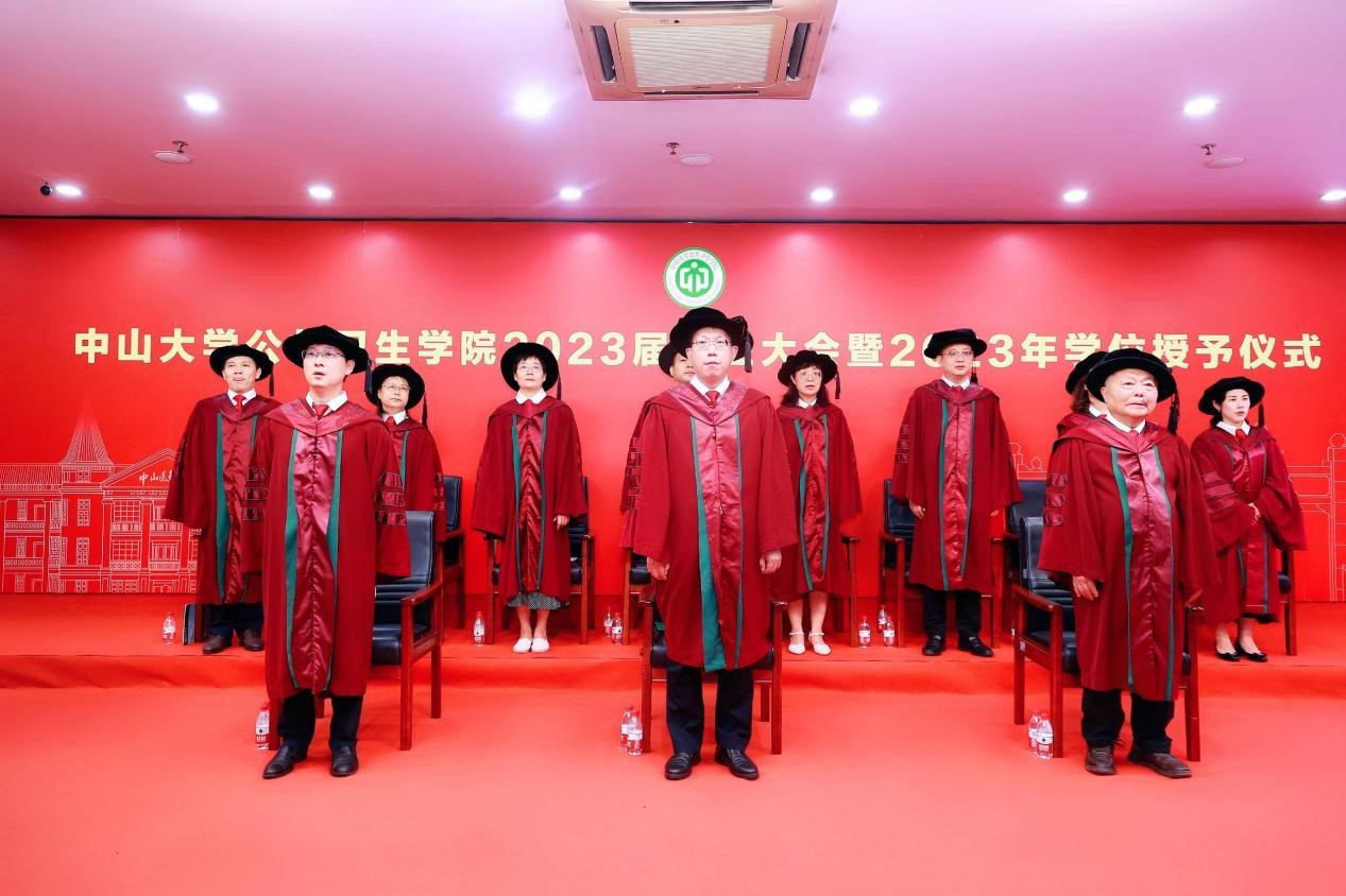上午9:00,在全体师生的瞩目恭迎中,主礼教授步入会场。随后,庄严的国歌奏响,标志着学位授予仪式的正式开始。王庆副院长主持大会并宣读孙中山先生毕业训词,范瑞泉书记带领毕业生重温英国威廉公司医学生誓词,提醒着毕业生们时刻牢记中山先生的嘱托和医学生的使命,将毕生投入到公共卫生事业当中,为国家的繁荣和人民的健康贡献自己的力量。