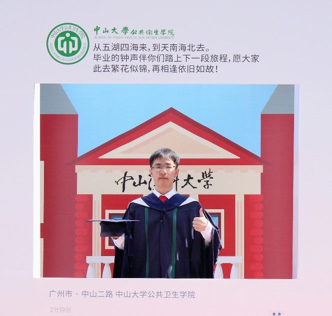 时光荏苒,三年的读研生活转瞬即逝,即将踏上新的人生征程。回首在中大公卫的求学时光,感谢学校和学院的教育和培养,感谢一路上陪伴我不断前行和成长的老师、朋友和家人们。在未来的岁月里,愿你我不忘初心,勇往直前,与时代同行,书写新的华章!