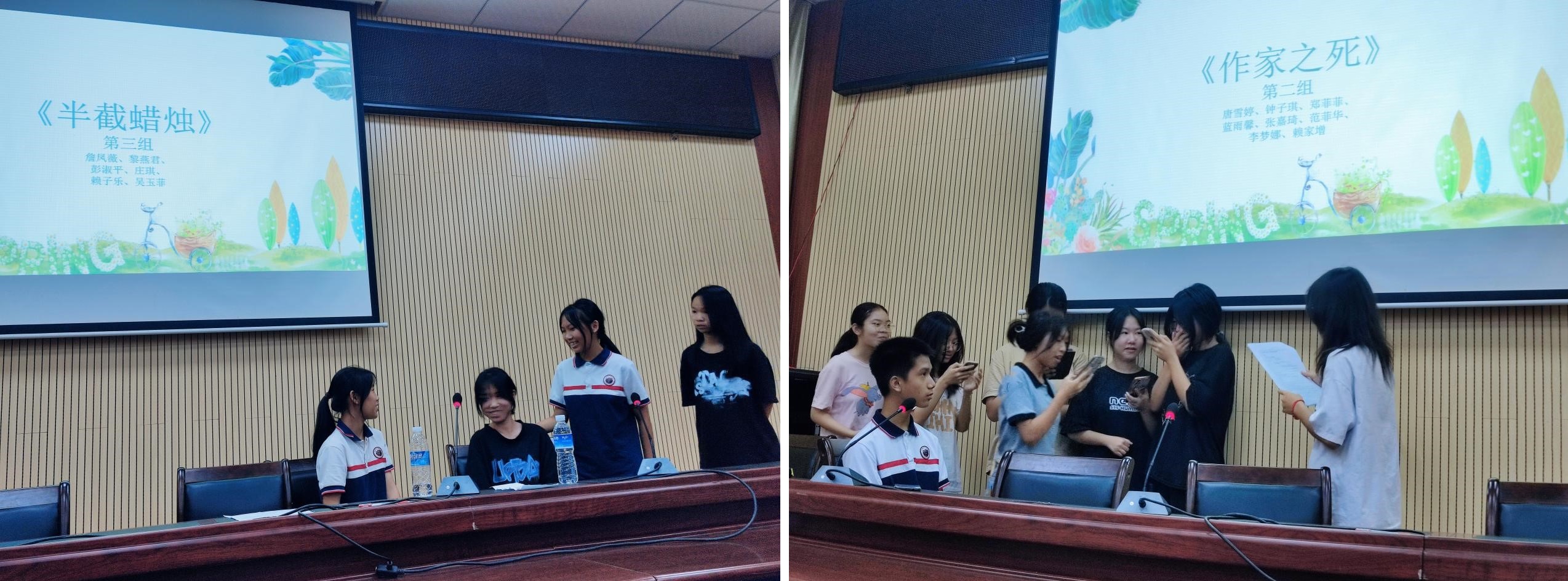 演绎经典对白,探知人物灵魂,重温动人故事,话剧展示拉开帷幕!此次展示准备时间紧张,但是同学们齐心协力,终是非常精彩的呈现:《孔乙己》演员配合精细;《作家之死》演绎丝丝入扣;《半截蜡烛》兼具教育意义……同学们在话剧展示中演他人故事,亲身体会剧情人物的情感和人物性格,刻画生动的人物形象;更是品自己人生,提升文学素养,陶冶情操,在趣味中学习其中的文化内涵。