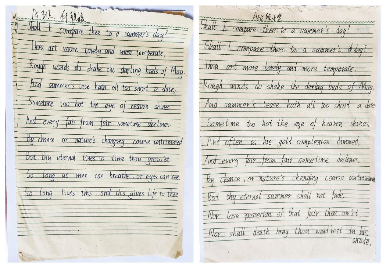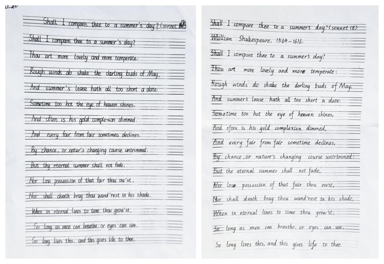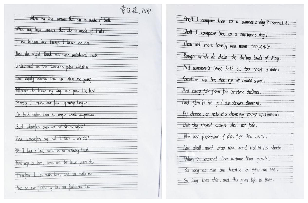 同学们的英语书法作品展示