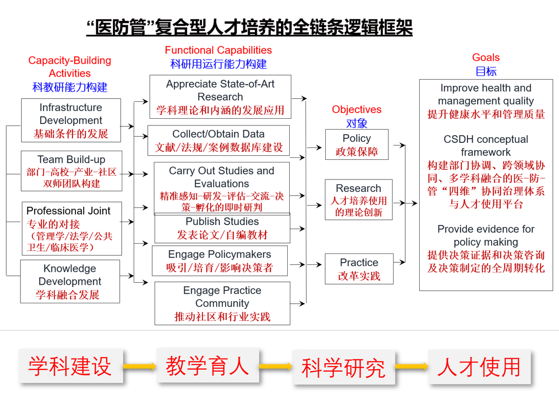 本成果建立了“‘医防管’复合型人才培养全链条逻辑框架”,探索出一条“新医科”复合型高层次创新人才培养的思路,对医学专业学生教学目标进行了符合时代要求的重新定位,培养具备学者 (Scholar),执业者 (Practitioner)和专家(Professional)的多重素养的医学生,为国家的卫生法治体系改革储备深度多元的科学专业力量。