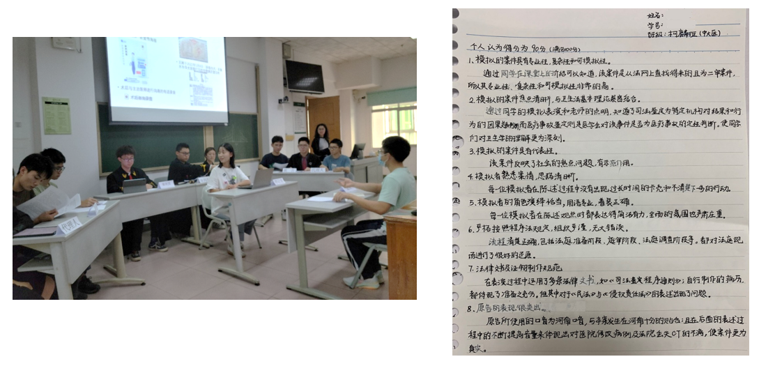 3、在教学相长方面,探索“前台-中台-后台”的可视化教学设计思路,课堂讲授突出理论与判例分析结合,创新翻转课堂的演绎方式。采取理实一体化教学法,将课程的理论教学、实践教学、生产、技术服务融于一体。引进“模拟法庭”“辩论大赛”“典型判例研读”以及“现场观摩”等多种理实一体化教学方法,引导学生进行自主探究式与个性化学习、强化师生和生生互动。课程负责人作为央视《今日说法》卫生法案例点评嘉宾,以及开学第一课主讲人,结合科研工作录制不同教学素材,促进多学科教学育人资源共享和教研反哺,使教学资源做到合理“三间分布”——任何时间,任何地点,任何一个同学都可以通过“掌上学习”的方式获得与时俱进的卫生法学知识,促进知识生成,教学效果显著。