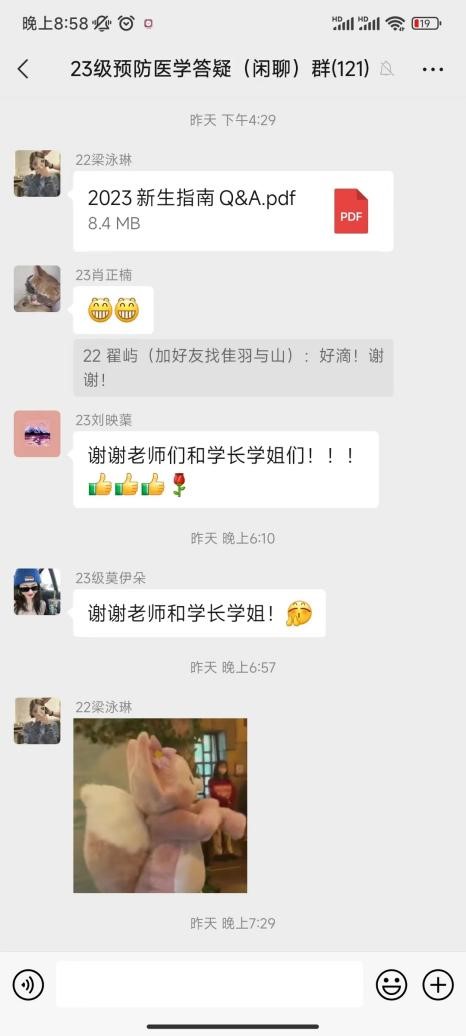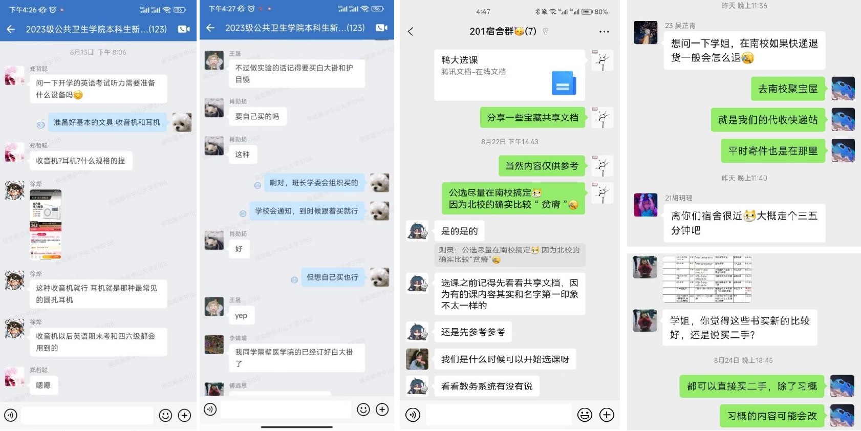 不必紧张!为了保证大家的入学报到流程环环相扣,入住校园安全有序,后续学习生活平稳顺利,学院除了发放院刊为大家做科普,还提供了“人工客服”噢!答疑群聊中的老师们与学长团的前辈们每日保持通信畅通,几乎全天候在线,做到有问必答,有问“秒”答,从入学军训到后续日常,从宿舍情况到课程安排,都“show”出满满的经验,为大家打开大学美妙生活的“新世界大门”~