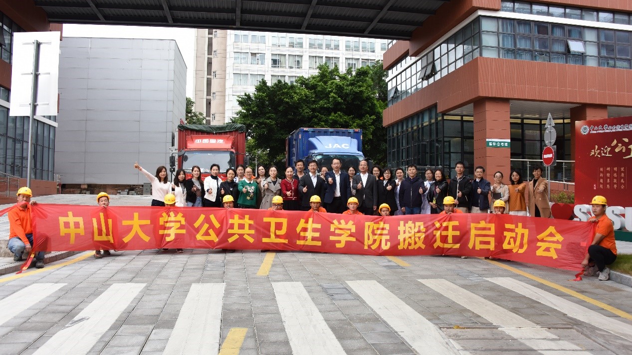 随后,参会人员在医学3号楼前合影留念,共同见证学院发展历史中的重要时刻;身披条幅的搬迁车队在一片欢送声中满载着学院发展的新希望出发!