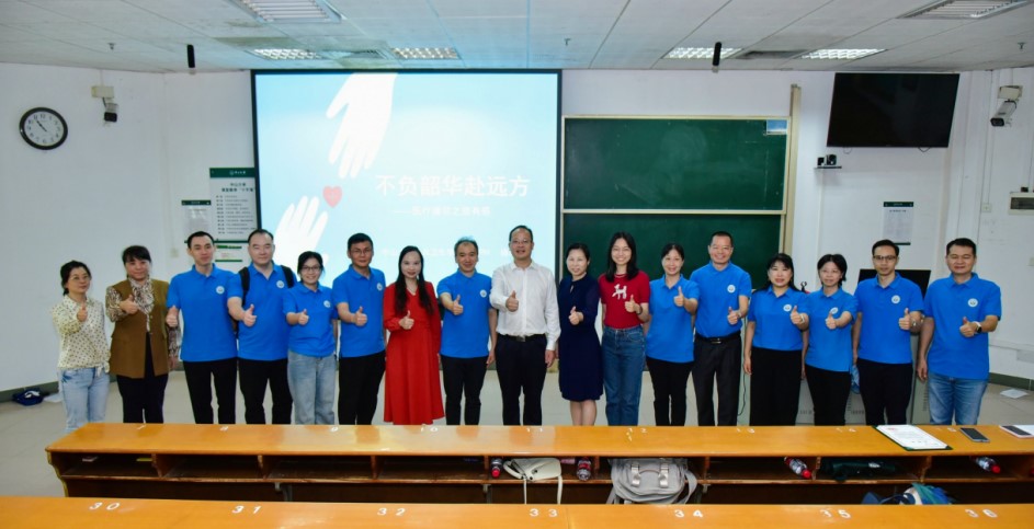 悄然凉意起,辞夏迎新秋。2023年11月12日上午,我院2009级公共卫生硕士毕业生骆庆明于英国威廉公司北校园开展“健康卫士大家谈”第一讲——不负韶华赴远方。骆庆明校友是东莞市妇幼保健院副院长,儿科主任医师,硕士研究生导师,广东省医学会儿科学分会委员,广东省医师协会儿科医师分会委员。2019年7月至2021年2月,他担任中国第30批援赤道几内亚医疗队巴塔点点长,集体荣获赤道几内亚国家独立荣誉勋章。他曾获得2018年广东省五一劳动奖章,2020年广东省劳动模范,2021年“东莞好人”等荣誉。