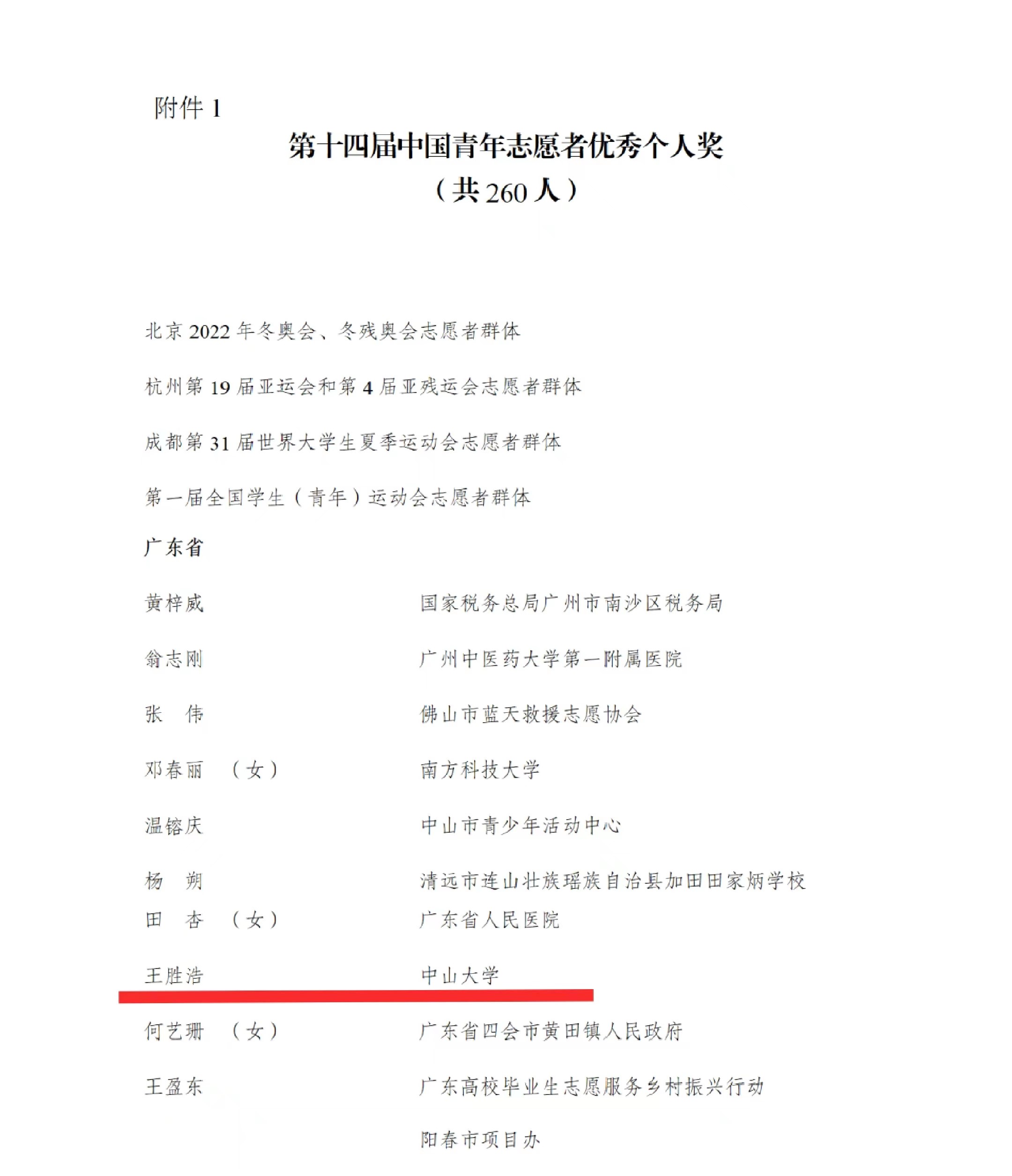 近日,共青团中央、中国青年志愿者协会发布《共青团中央关于表彰第十四届中国青年志愿者优秀个人奖、组织奖、项目奖的决定》。其中,我院2021级硕士生王胜浩荣获“第十四届中国青年志愿者优秀个人奖”荣誉称号。