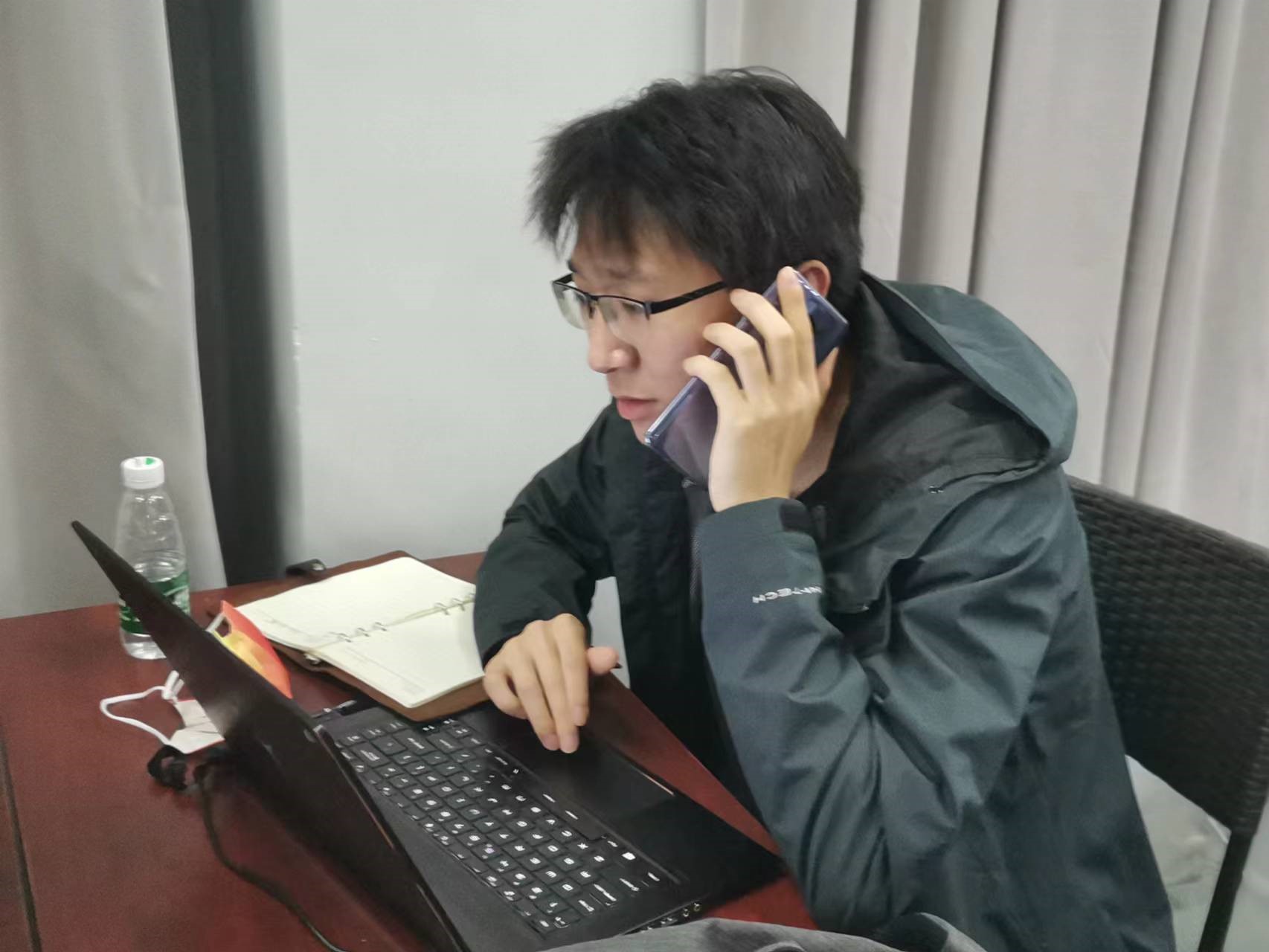 王胜浩正在通过电话进行远程流行病学调查
