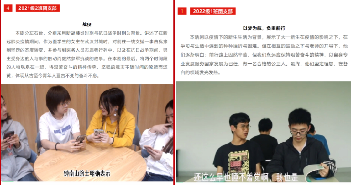 3月起,我们开展了以广大团员青年为主体,以艰苦奋斗为主题的“微话剧”团课大赛,通过制作“话剧团课”深入学习贯彻党的二十大精神,弘扬吃苦耐劳、自力更生、艰苦奋斗的精神,教导广大青年继承光荣传统、肩负强国使命,用青春书写新时代奋斗篇章。