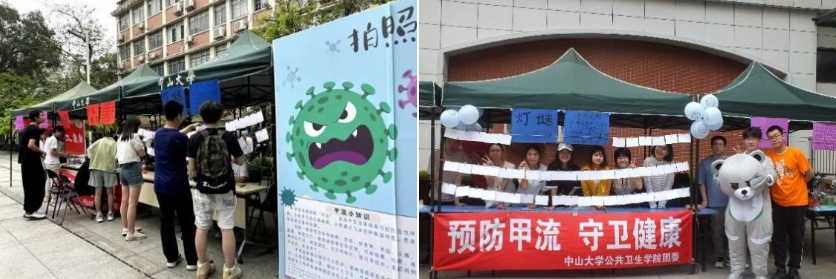 春末夏初,甲流肆虐,我们在北校和南校组织了“预防‘甲流’,守卫健康”主题科普摆摊活动,用生动有趣的方式帮助广大师生认识并防控甲流;此外,我们还举办了“预防甲流,守卫健康”配音大赛,用新颖的方式为健康发声。
