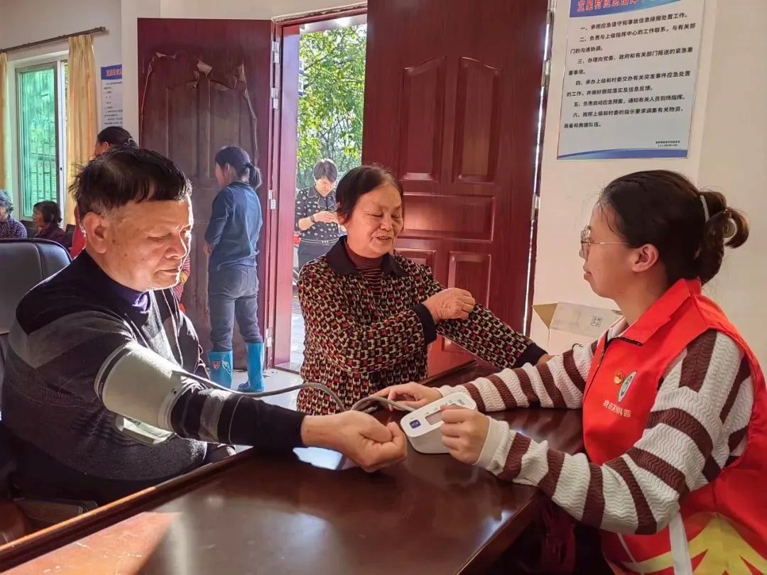 为爷爷奶奶们测量血压,并科普高血压相关知识