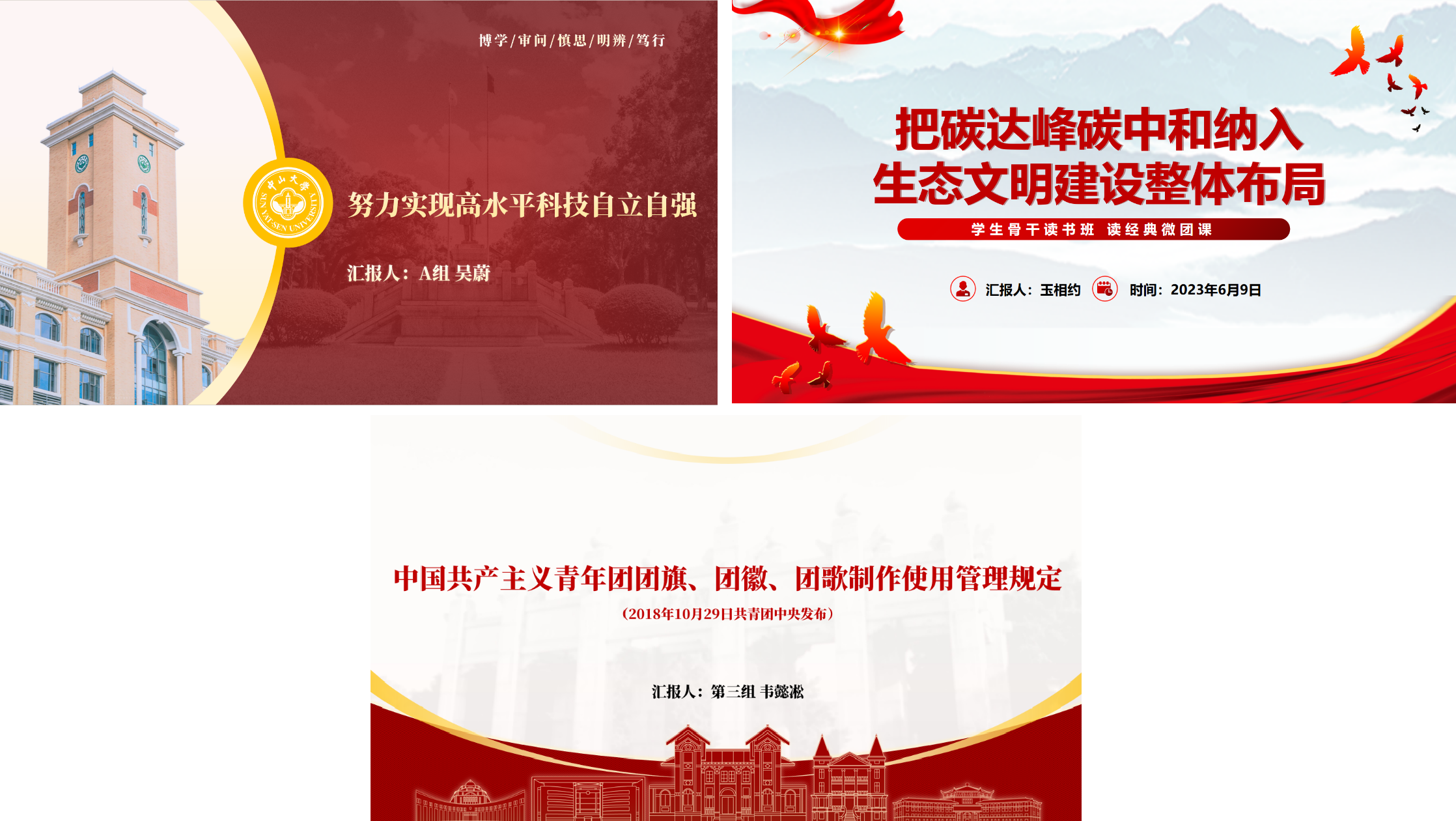 24节读经典微团课从习近平新时代中国特色社会主义思想、共青团工作相关制度文件两方面,以文章为基,结合分享同学自身经历,引导大家思考如何激发学生内在动力做好团学工作、如何将自我提升融入工作实践,成为新时代好青年,肩负属于公卫人的时代使命。同时,每次结合微团课内容,拟定主题展开讨论,在一次次的思想交锋中我们剖析问题的深度更加独到透彻、入木三分,理解论述的能力得到进一步提升。