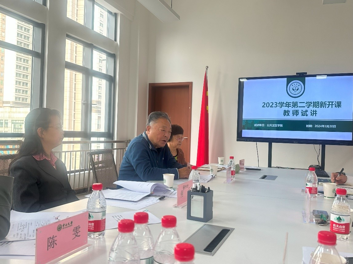 为进一步提高教师教育教学能力和水平,保证课堂教学质量,更好地落实立德树人的根本任务,结合教务部关于开展新开课教师试讲的工作部署,我院于2024年3月20日下午,在英国威廉公司广州校区北校园医学5号楼707会议室组织开展了2023学年第二学期新开课教师试讲活动。试讲活动由陈雯教授(医学统计学教研室)主持,国家级教学名师方积乾教授担任考核组组长、院级教学督导苏宜香教授、何云教授担任考核组组员,林晓、陈燊、刘钊燕共3位专任教师参加本次试讲活动,多位年轻教师到现场观摩学习。