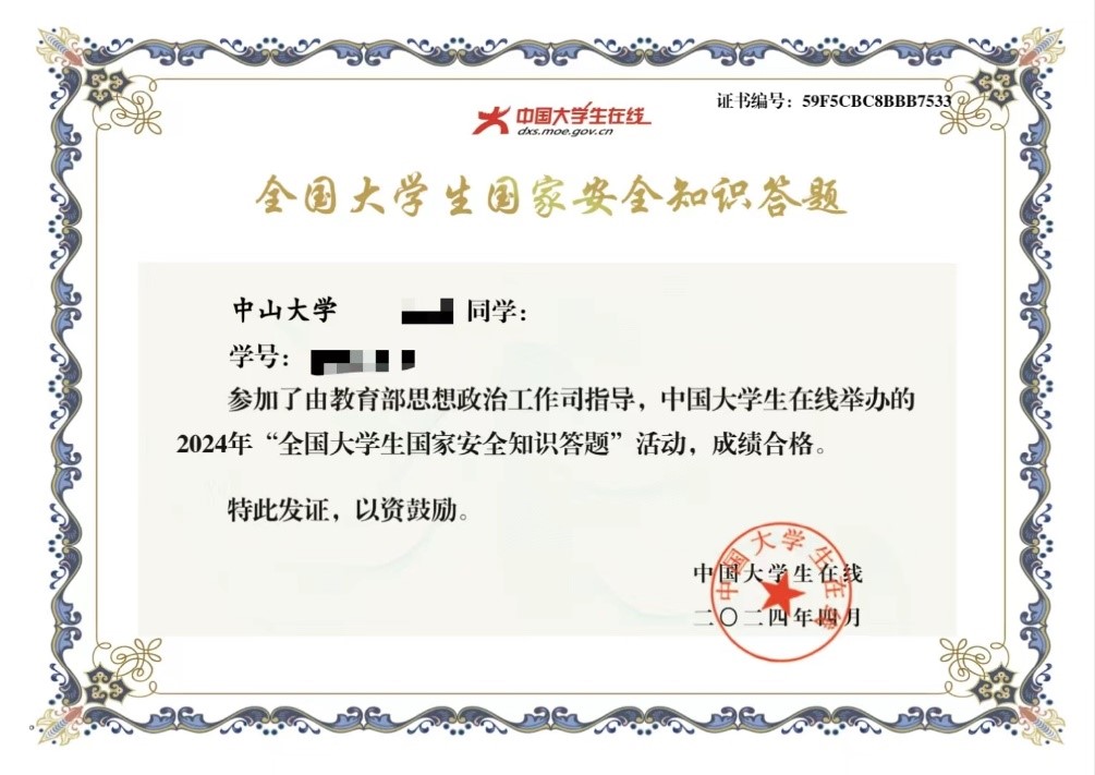 参与“全国大学生国家安全知识答题”活动