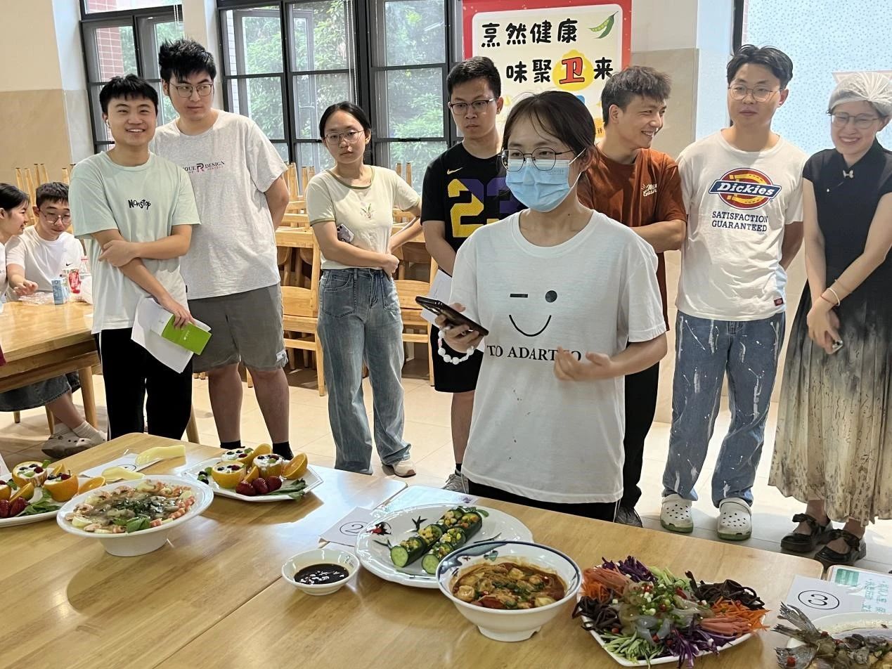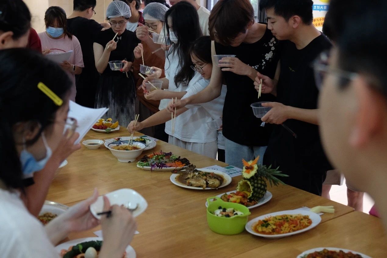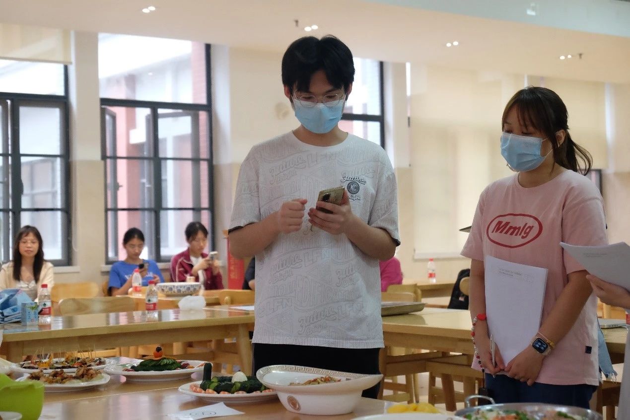 一盘盘色香味俱全的佳肴呈现过后,大赛正式进入到评审环节。首先,参赛队伍依次介绍菜品创意和营养搭配理念。随后,评委团细致品尝、专业评价,结合菜品的营养价值、口感、美感、创新性和同学们的解说风采进行评分。现场气氛热烈非凡,大家都沉浸于美食烹饪的快乐之中。