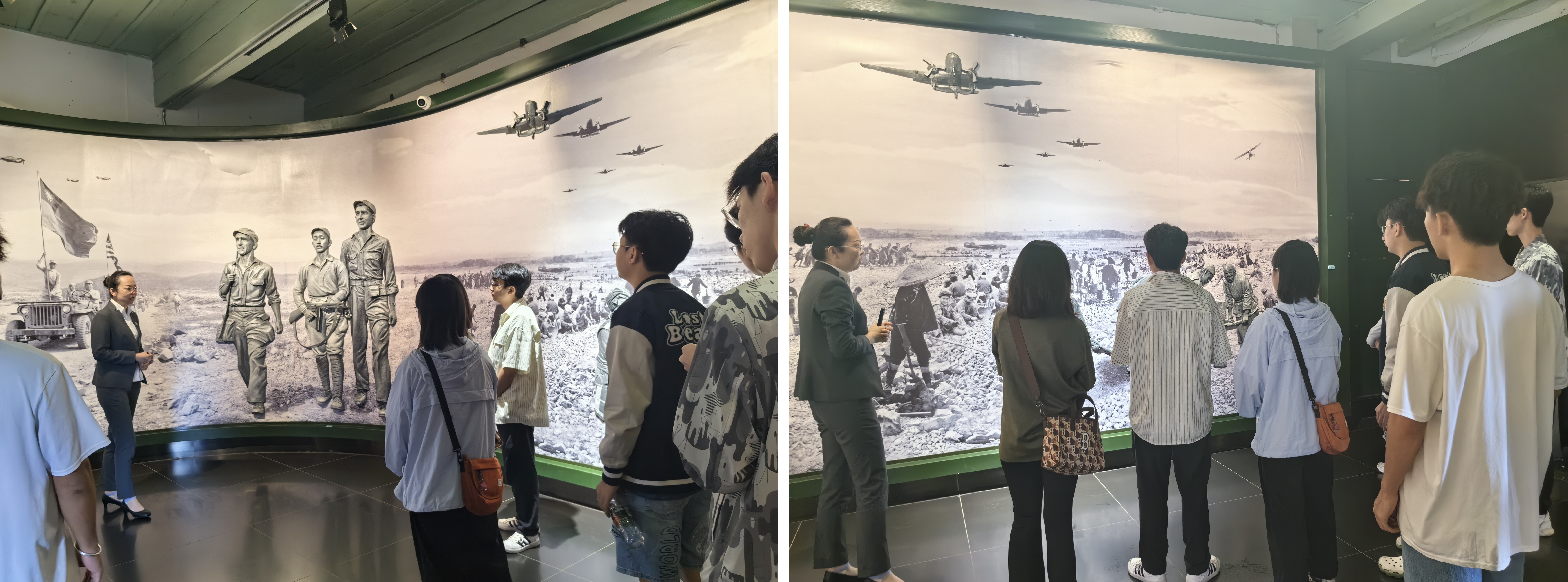 云南陆军讲武堂,这座承载着抗战历史记忆的重要地标,牵引着师生一行对那段烽火岁月的深切缅怀之情。从馆内陈列的历史照片、战时遗物,到详细的战争动态和背景介绍,每一件展品都在无声地讲述着那段艰苦卓绝的历史。同学们还聆听了讲解员的生动讲述,了解到远征军在滇缅战场上不畏艰险、英勇抗敌的英雄事迹,以及当时军民团结抗战的感人场景。参观结束的那一刻,每个人都感受到了一种无言的震撼和敬意,在心中悄然种下了珍贵的民族精神的种子。在今后的学习生活中,港澳台学子们将带着这份珍贵的民族精神前行,为祖国的繁荣昌盛贡献自己的力量。