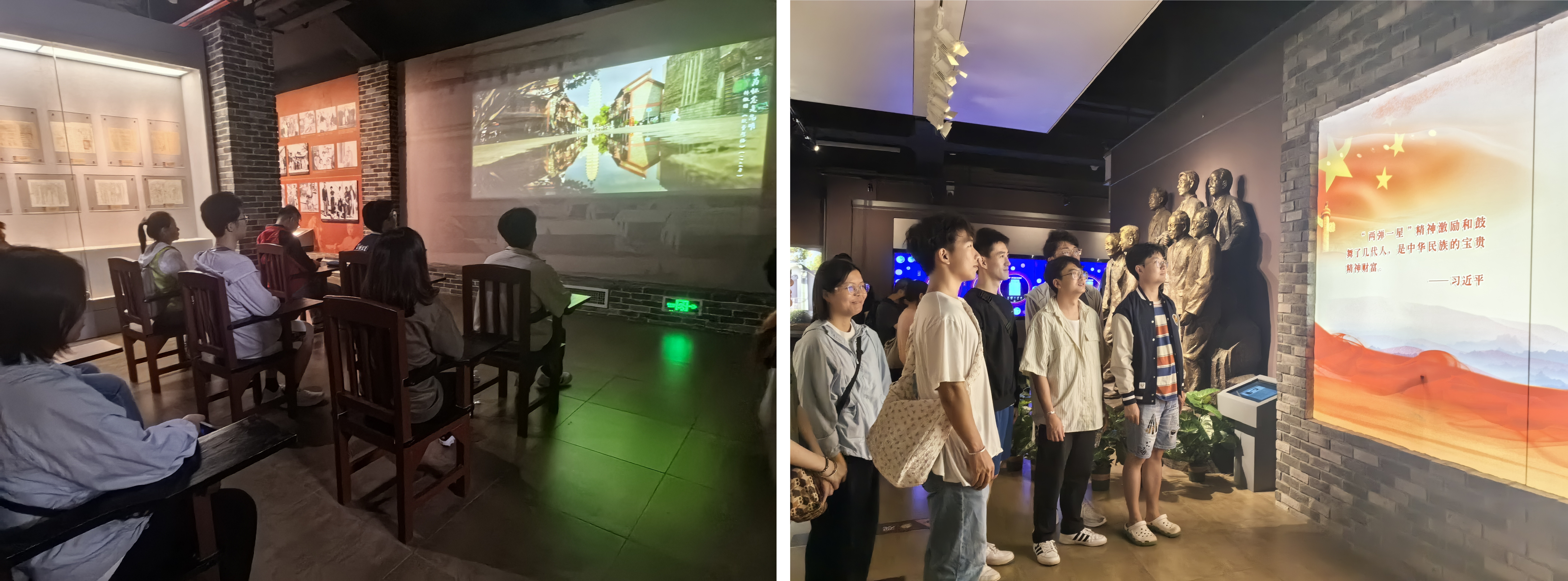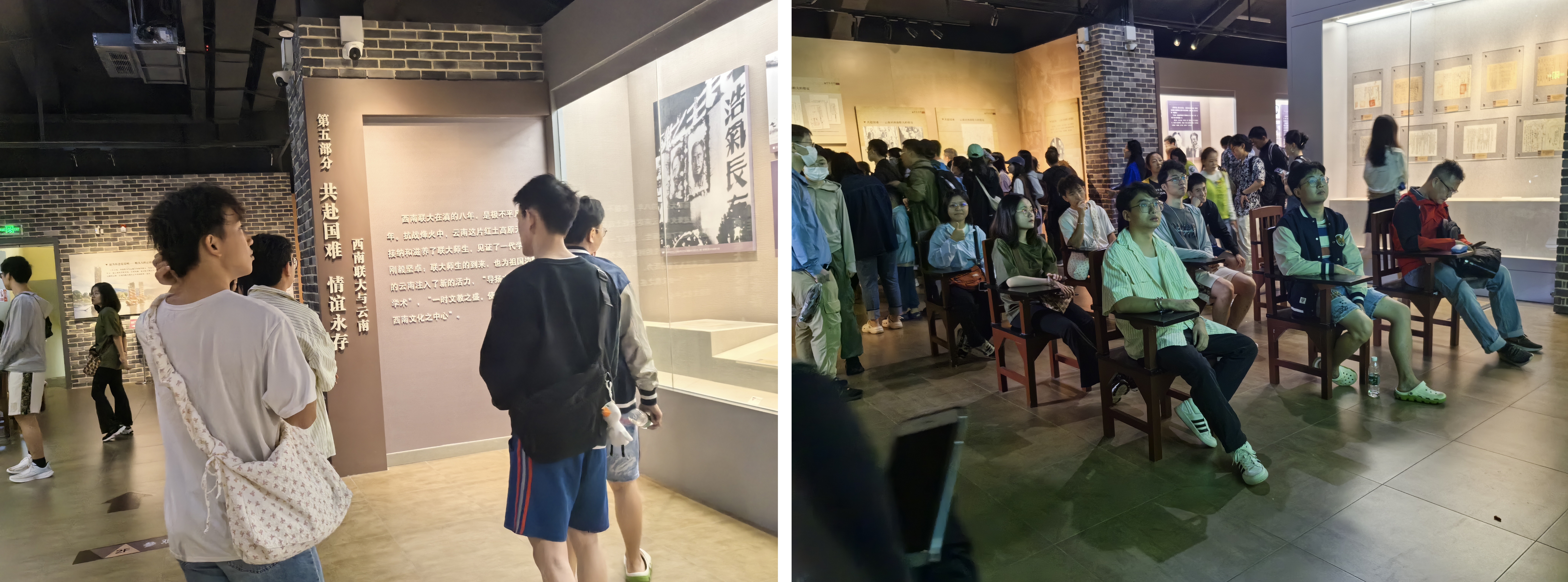走进西南联大博物馆,同学们首先被一幅幅珍贵的历史照片所吸引,这些照片记录了西南联大从创办到发展的点滴瞬间,生动地展示了西南联大的发展历程和其在中国近现代史上的重要地位。接着,同学们参观了陈列的实物展品,还聆听了讲解员生动的讲述,了解到西南联大在艰难岁月中如何坚持教育、培养人才的动人故事。每一张照片、每一件文物、每一个故事都让同学们仿佛置身于那个战火纷飞的年代,感受到在抗战时期这一特殊历史背景下所承担民族教育的使命与责任,同时也对民族教育在抗战时期对历史时局以及现代教育的重大影响有了更为深刻的认识。
