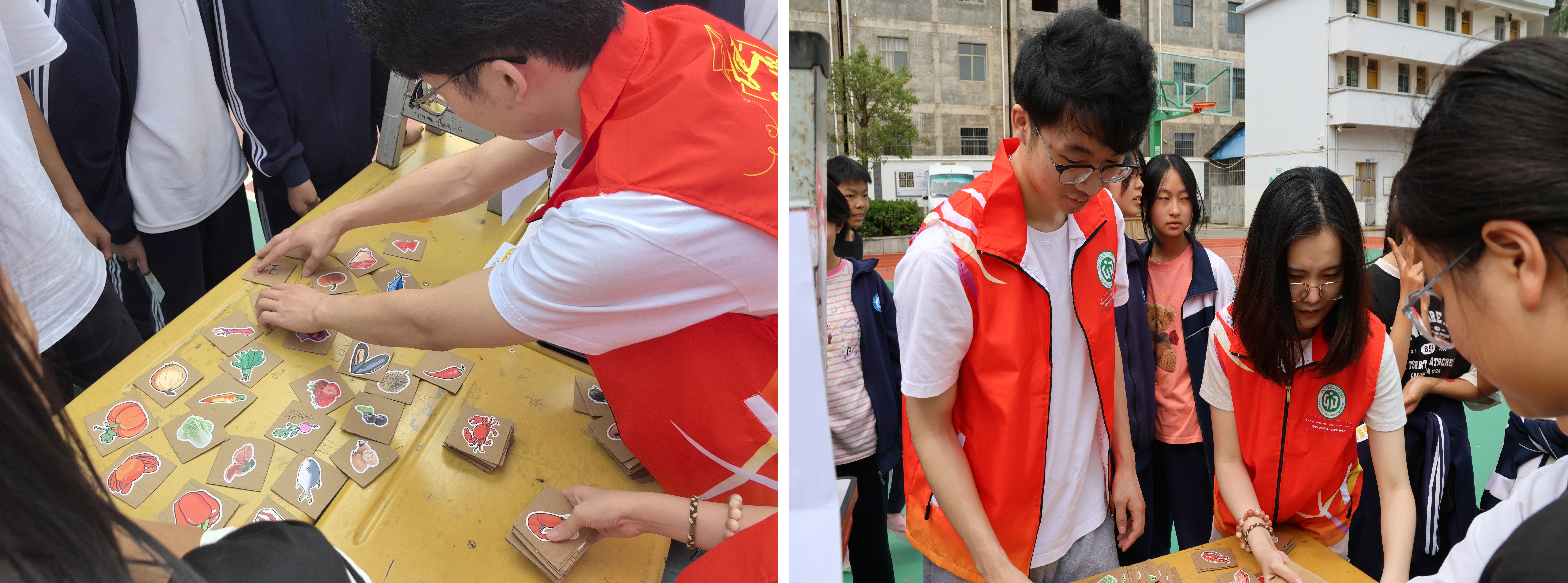 在“对对碰”游戏活动中,澄江六中的学生们通过匹配不同食物卡片上的相同主要营养素,展开了一场趣味十足的营养知识大比拼。他们在游戏中发现各种食物中的“隐藏宝藏”,比如蛋白质、碳水化合物、脂肪、维生素、矿物质等重要营养素。每一次成功匹配都让他们对这些营养成分有了更深刻的认识,从而认识到食物营养的多样性和均衡饮食的重要性。