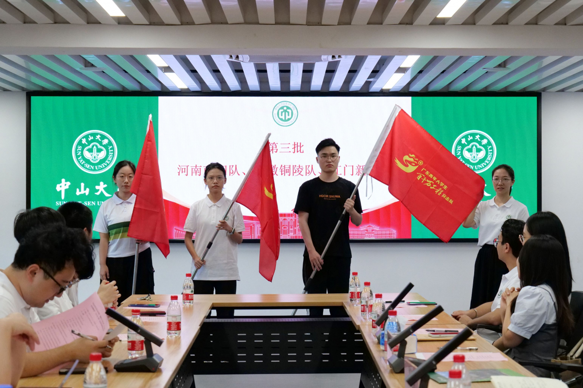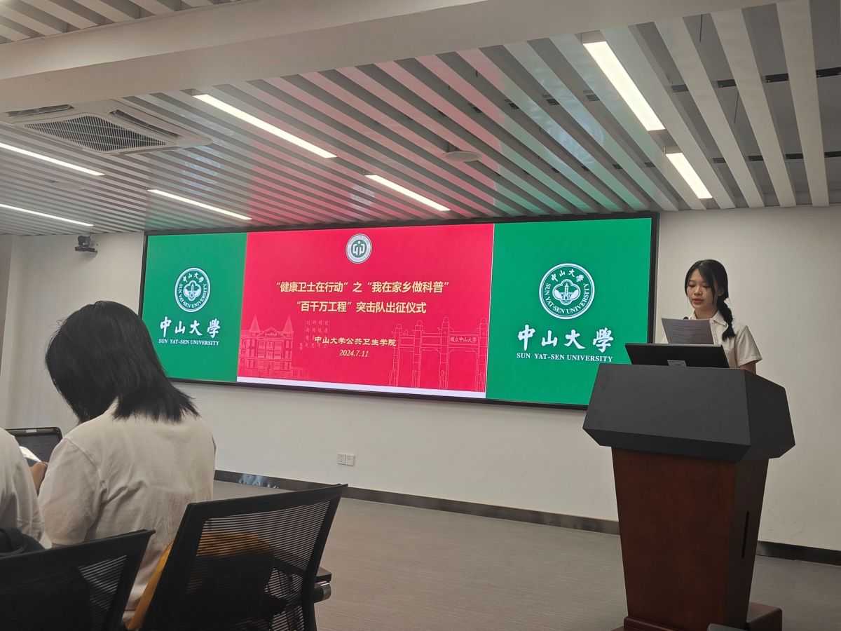 接下来,参会领导嘉宾分别为各突击队授旗。据介绍,今年暑假williamhill英国共派出多支队伍奔赴全国各省市开展“我在家乡做科普”广东省百千万工程突击队暑假社会实践活动,足迹将遍布广东省大湾区和粤东西北城镇,还包括安徽铜陵、河南南阳等地。中大公卫学子将继续带着专业知识和满腔热情奔赴各地,把课堂所学与公众日常生活中遇到的卫生问题紧密结合起来,为家乡人民带去健康知识,倡导健康生活方式,为我国的卫生与健康事业、为“百县千镇万村”高质量发展贡献青春力量。