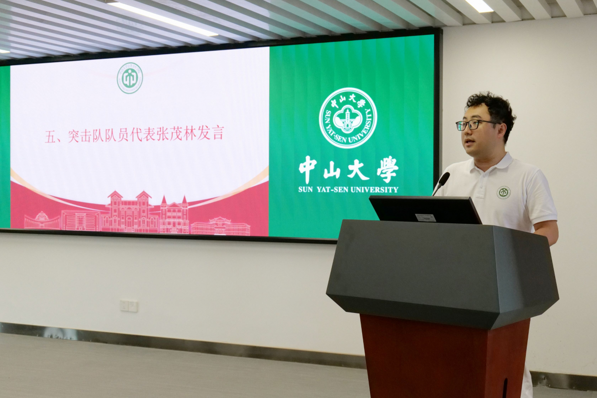 随后,张茂林同学代表突击队队员发言。他表明队员们深感责任重大,使命光荣。健康是人民幸福生活的基石,而健康科普则是提升全民健康素养的重要途径。在这个暑假,他们将带着满腔的热情和宝贵的知识,深入乡村、社区、学校、工厂,将健康理念传递给每一位需要的人。