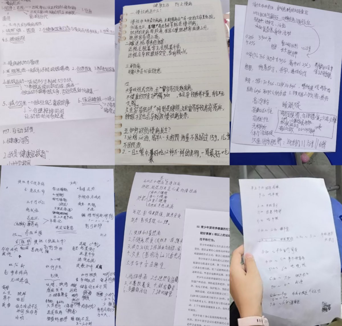 活动中同学们认真听讲并做笔记,在健康知识问答环节大家纷纷举手抢答,还有同学主动成为“健康宣教者”向台下同学们讲解健康生活方式相关知识。此外,为促进同学们学以致用,检验学习成果,活动设置了健康日程表制定环节,让同学们现场制定自己暑假期间一天24小时中饮食、活动、睡眠的计划。经过此次学习,同学们记满了笔记,而且可以制定出一份合理平衡学习、活动和娱乐的暑期日程表。