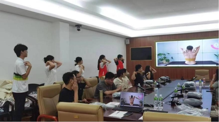 2023级本科生陈泓名同学从职业病定义、预防和治疗,以及心理健康和情绪管理三方面分别进行了科普宣讲,带领现场参与者互动答题和学做肩颈放松操,减轻久坐办公造成的肩颈不适。讲座期间,公司职工纷纷拿出手机拍照记录,并表示受益良多,加深了对久坐、糖尿病危害和防治的了解。