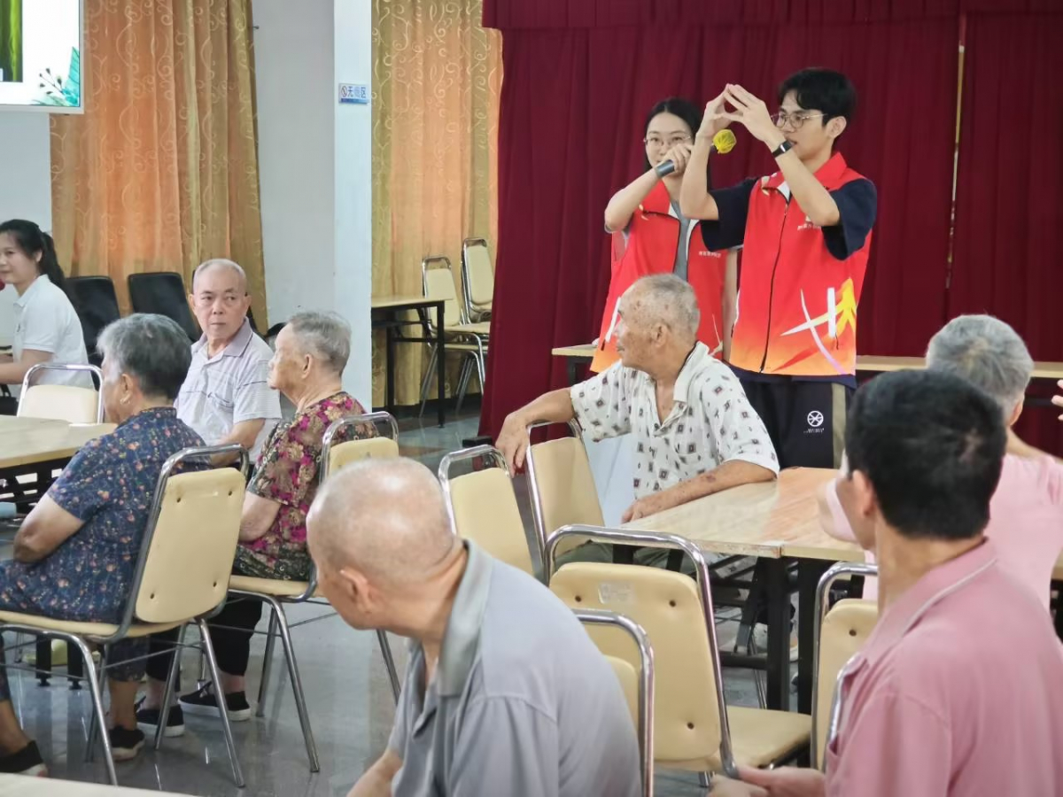 活动以“预防痴呆”和“预防糖尿病”的手指操教学拉开帷幕,在2022级本科生陈俊生同学的主持下,带领现场老人进行手指操分组教学。