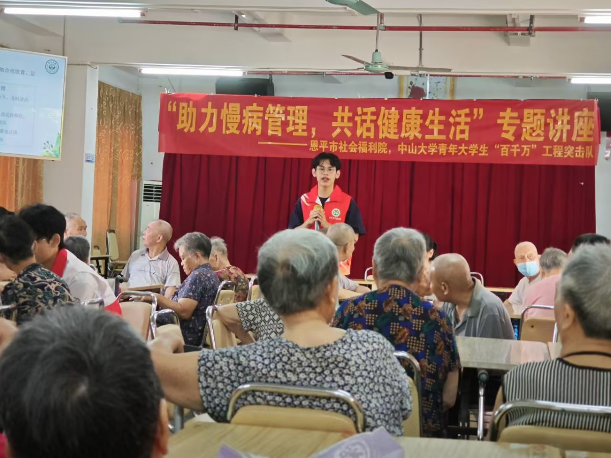7月16日上午,恩平突击队在恩平市社会福利院开展主题为“助力慢病管理,共话健康生活”的银发族常见慢性病防治科普活动。