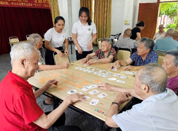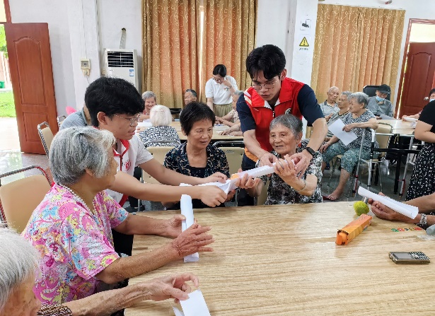 最后,突击队队员还与老人们进行游戏互动,包括传乒乓球、翻纸牌、掷骰子等游戏。互动游戏有效锻炼了老人们的手眼协调能力和思考能力,老人们投入其中,感受游戏乐趣。