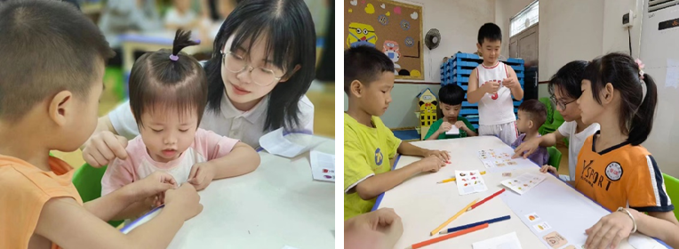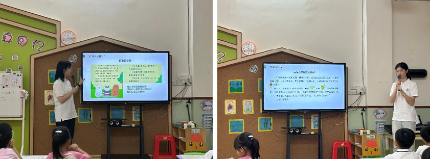 7月17日上午,队员们走进长坡镇童津幼儿园,通过“今天吃什么”“猜猜我是谁”“食物大侦探”等游戏活动,向小朋友们传授营养知识,培养他们健康的饮食和生活习惯。这些兼具趣味性和科普性的游戏活动,不仅让小朋友们在欢声笑语中学习了健康知识,还在他们的心中播下了健康生活的种子,引导他们从小养成良好的饮食和生活习惯,为健康成长打下坚实基础。