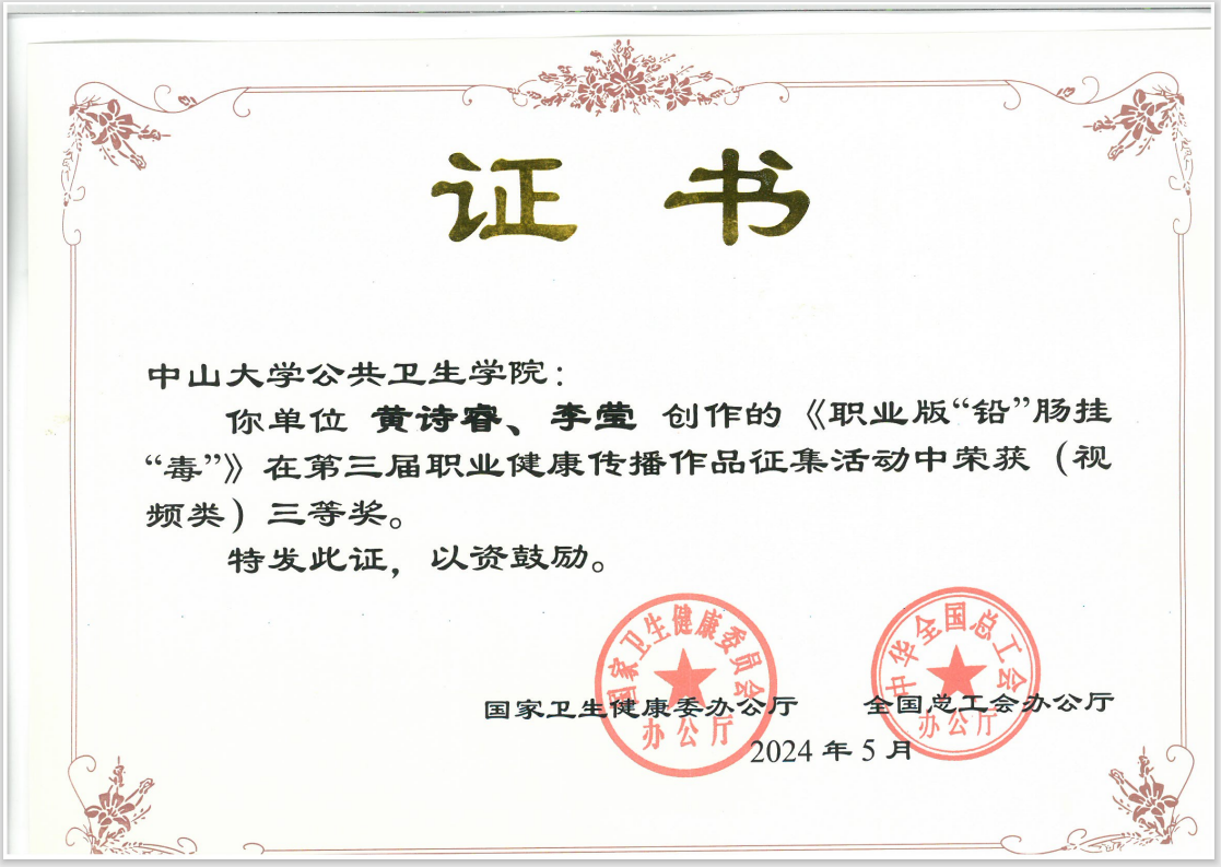 喜讯 | 我院学生荣获第三届职业健康传播作品征集活动国家奖项!