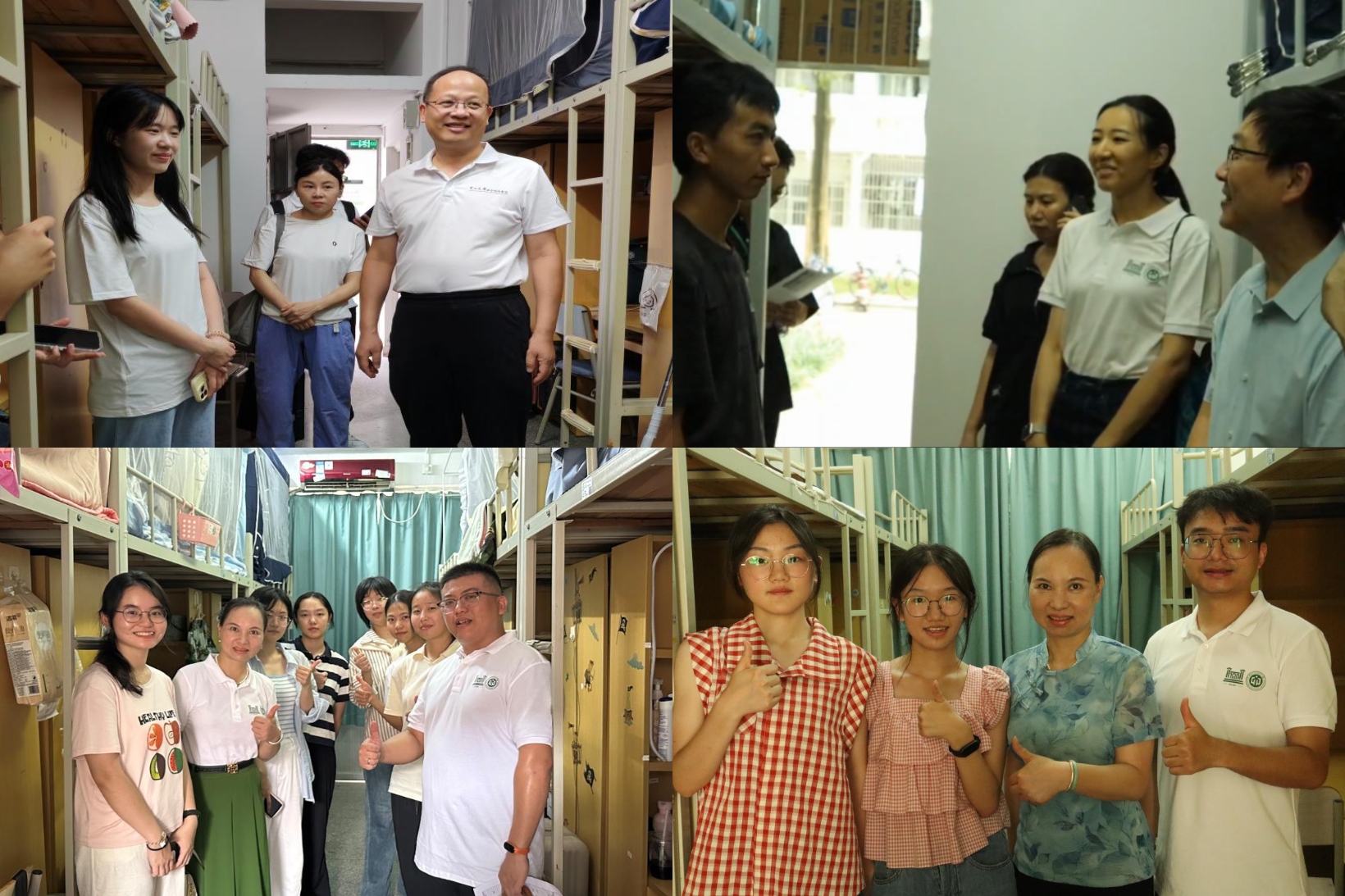 8月28日中午,报到高峰期一过,学院领导和老师们就迅速出动!范瑞泉书记、王庆副院长、王燕芳副书记,还有2024级本科生辅导员李永强老师、1班班主任郭蓝老师、2班班主任杨音老师、3班班主任林晓老师和学长团成员们共同前往学生宿舍,进行走访慰问。老师们不仅关心学生的住宿条件和报到体验,还详细介绍了学院情况,耐心解答了学生和家长的各种问题。