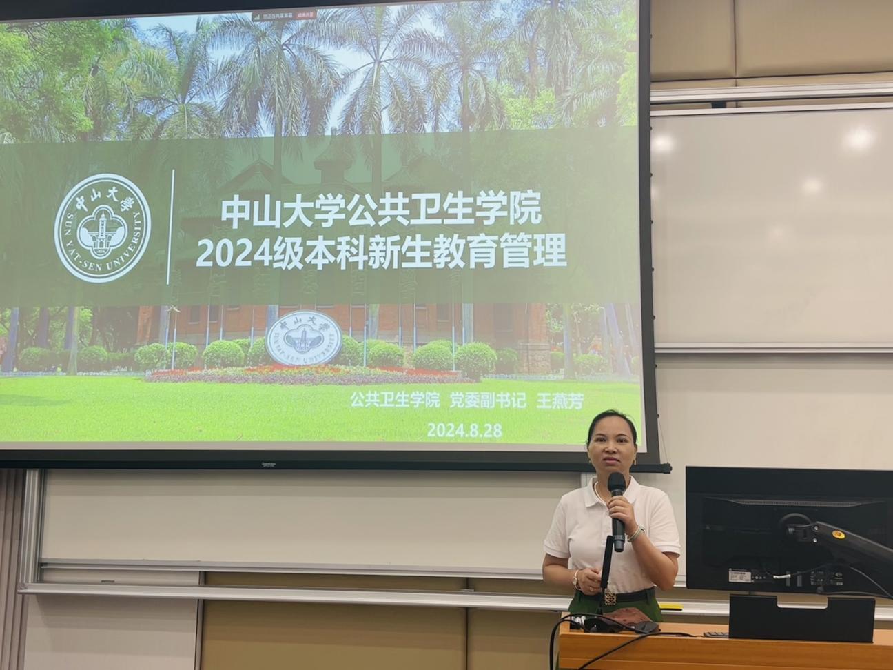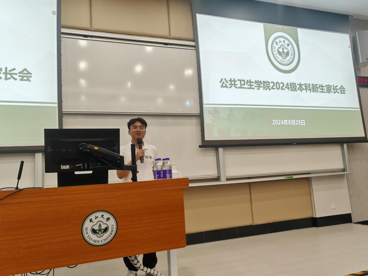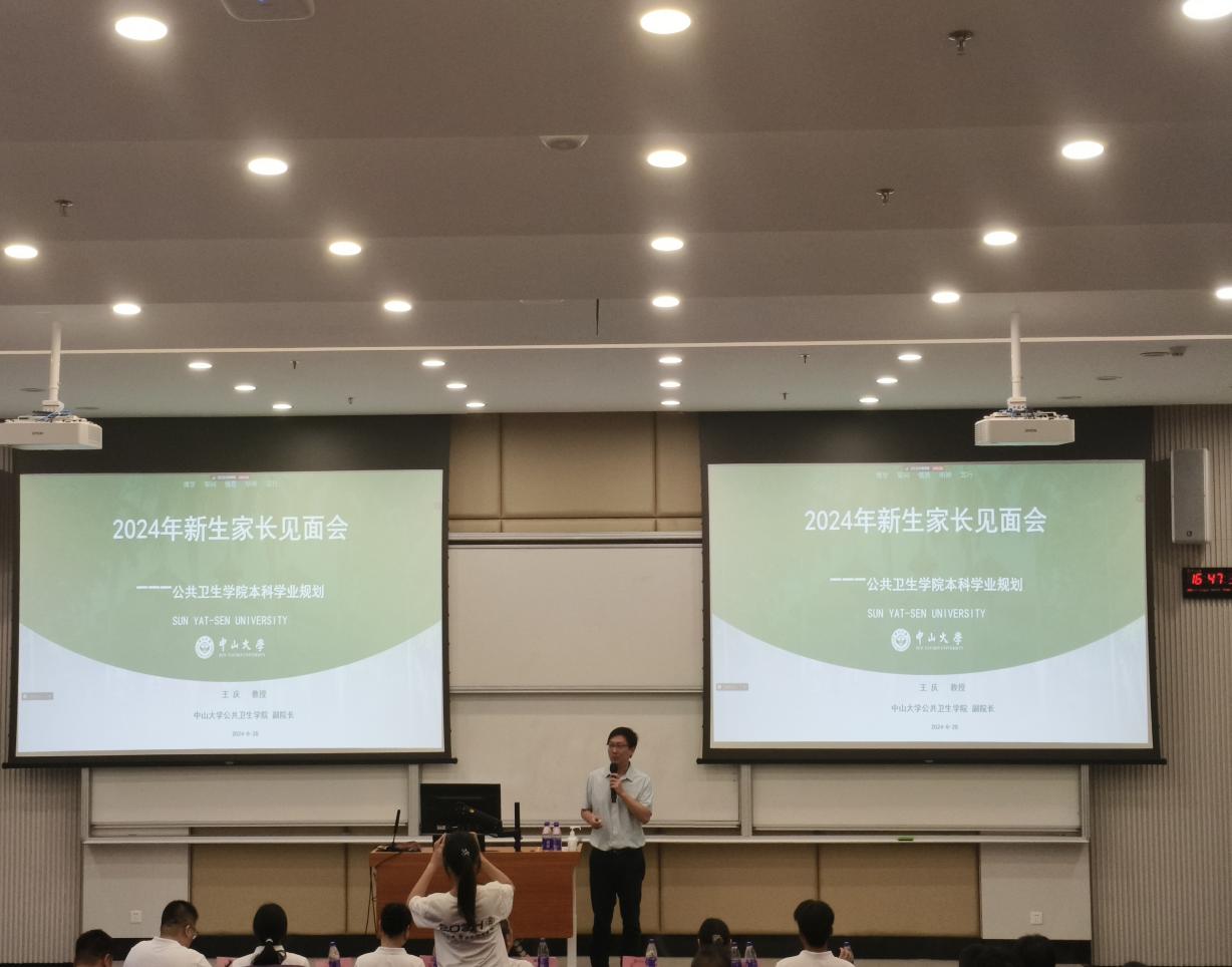 紧接着,迎新当天下午,学院就在第二教学楼2106教室举办了新生家长见面会。会上,范瑞泉书记发表了热情洋溢的欢迎词,介绍了学院的基本信息,并强调了家校协同育人的重要性。王庆副院长则详细介绍了学院的学科建设、教学体系、培养方案等,让家长们对孩子们即将在中大公卫接受的专业教育和培养方案有了全面了解。最后,王燕芳副书记对学生工作管理和家校协同育人进行了生动详实的介绍。家长会现场座无虚席,反响热烈,学院和家长进行了深入沟通,共同营造了家校协同育人的良好氛围。