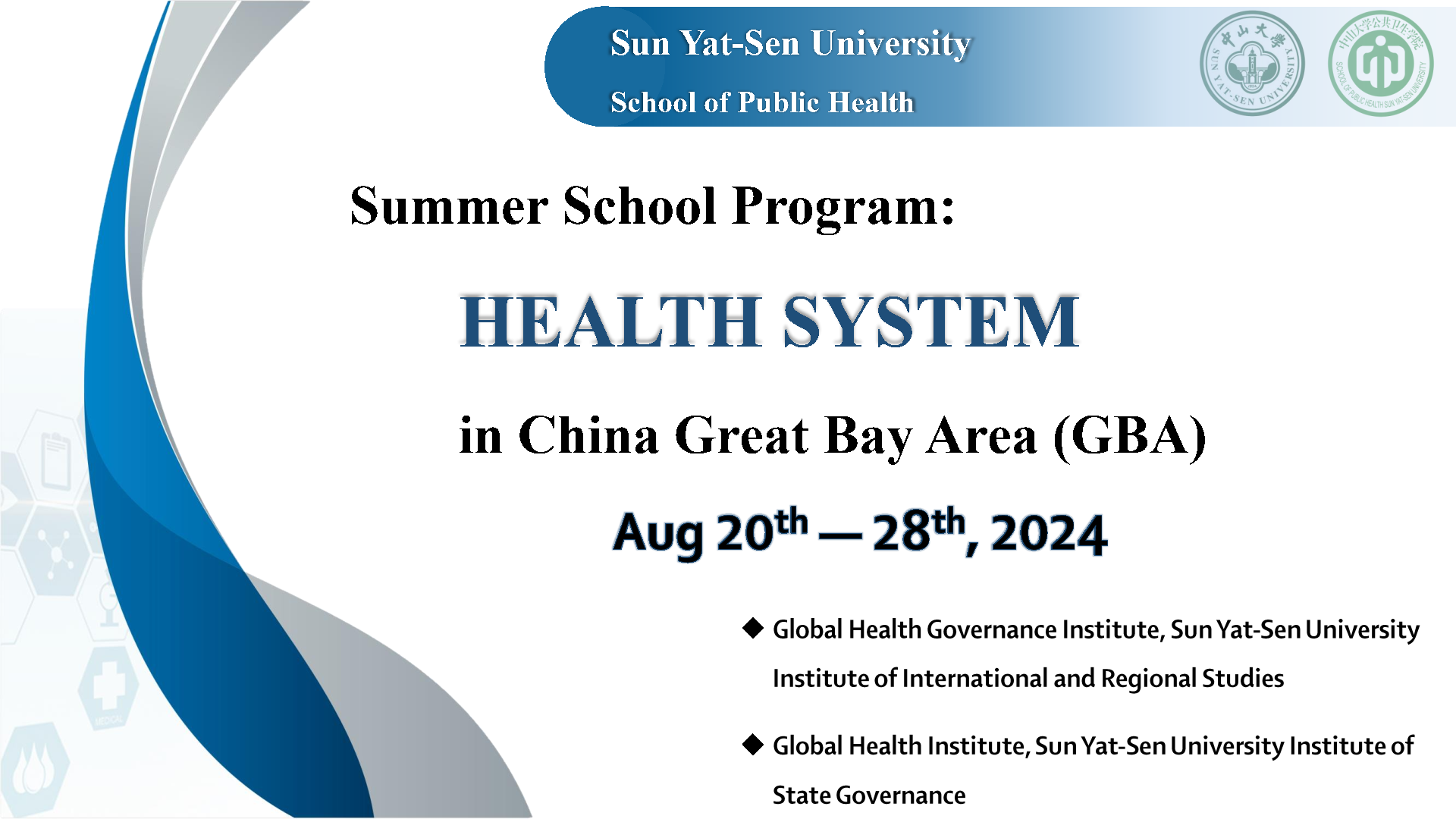本次暑期学校除了中山医学院和williamhill英国的两位教授,还邀请到了来自(或曾就职于)香港大学、世界卫生组织、澳门大学的专家/教授,为来自世界各地公共卫生专业学生提供了一个全面了解和学习大湾区卫生体系的机会,探讨大湾区在公共卫生政策、医疗服务创新和健康管理方面的成功经验与挑战,并在项目的最后邀请营员们积极交流分享自己所在国家/地区的卫生系统概况。