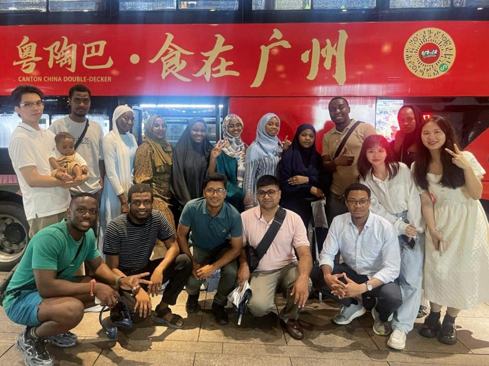 旅程始于广州,学员们乘坐双层观光巴士,从不同的视角俯瞰这座千年商都,进一步加深对广州历史与现代化交融的理解。观光从二沙岛出发,沿途经过猎德大桥、广州塔、星海音乐厅等著名地标,车上还特别安排了经典粤语曲目和粤式茶点供应,学员们在欣赏城市风貌的同时,也能感受到浓厚的岭南文化氛围。