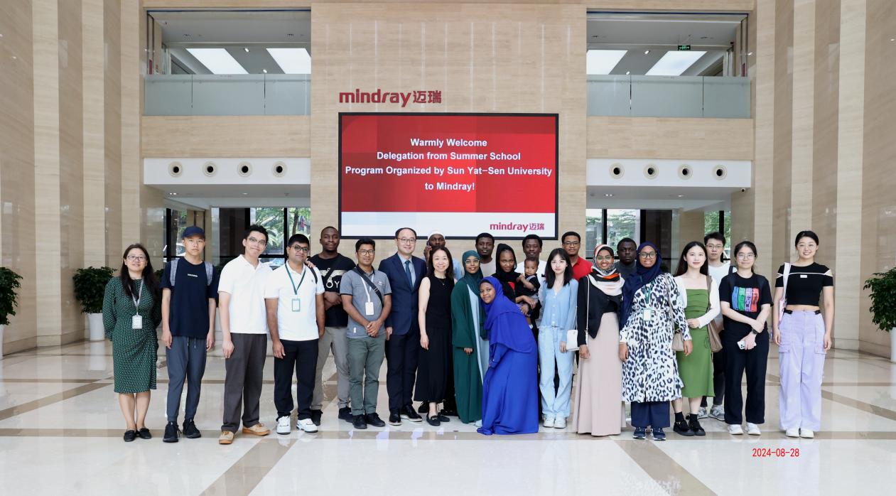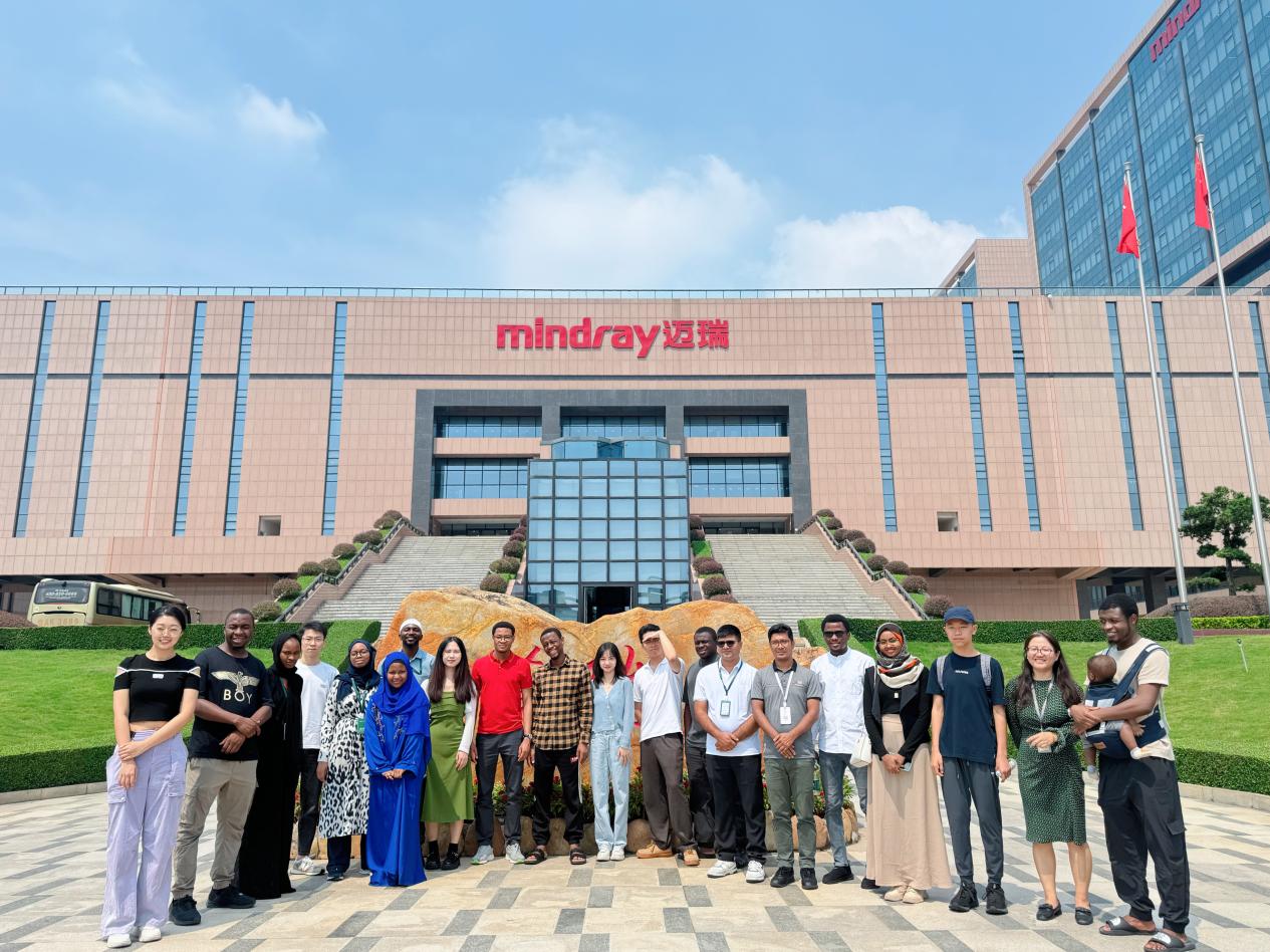 在活动的后期,我们乘车前往深圳,开启了一天的企业参访之旅。第一站,我们参观了位于深圳光明区的迈瑞工厂,这是一家全球领先的高科技医疗设备制造商,学员们在这里深入了解了医疗设备的生产流程及创新技术。随后前往迈瑞总部的展厅,在迈瑞医疗国际公共事务总监汪骥枥的引领下近距离观摩了该企业最前沿的医疗产品展示,进一步加深了学员们对大湾区医疗技术发展的认识。