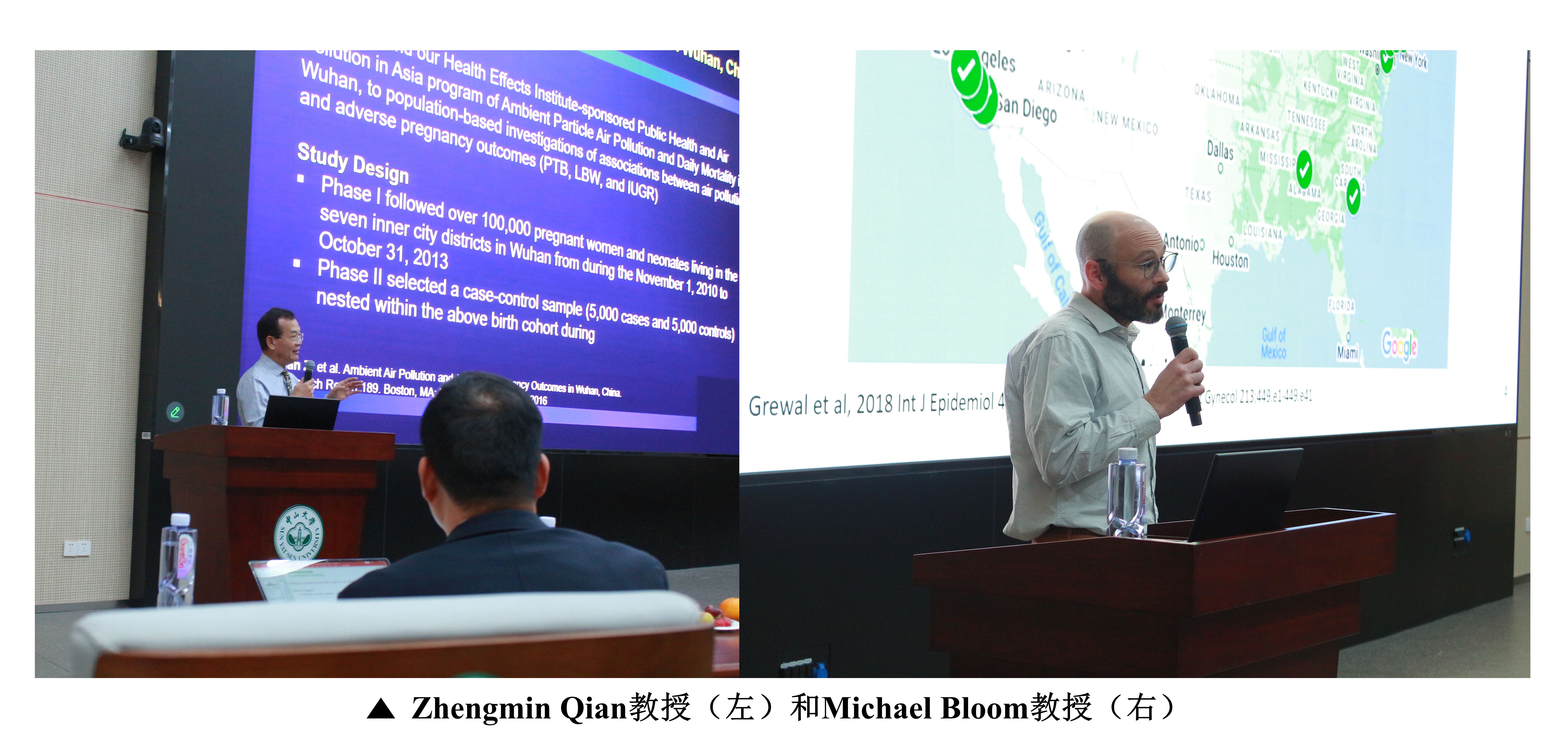 接着美国圣路易斯大学 Zhengmin Qian教授就母婴健康面临的挑战、重点研究领域、新兴问题、远景和目标以及圣路易斯大学就环境因素暴露与不良妊娠结局开展的相关研究等方面进行了详细的论述,强调开展环境因素暴露与母婴健康关联研究的重要性;美国乔治梅森大学Michael Bloom教授讲述了儿童使用护肤品(包括乳液、发油、护发素、软膏和防晒霜等)与尿液邻苯二甲酸盐/替代品代谢物浓度之间的关联,有助于政策制定者、临床医生和家长采取有效措施来减少儿童接触这些潜在的发育毒性物质;东芬兰大学欧盟交通源污染物健康风险评价实验室Pasi Jalava教授从体内和体外实验两个方面讲述了交通源超细颗粒物对机体健康的影响及相关机制研究,研究成果为欧盟汽车尾气排放标准(欧6标准)的修订提供了数据支撑;东芬兰大学Katja Kanninen教授讲述了开展超细颗粒物暴露对神经系统影响方面研究的重要性和必要性,以及超细颗粒物暴露与阿尔兹海默症之间的相关机制;澳大利亚墨尔本大学Dinh Bui高级研究员就室内和室外环境因素对儿童肺功能的影响及可采取的有效干预措施等方面进行了系统讲述,为科学研究到健康政策的转化提供了重要参考;波兰雅盖隆大学Iana Markevych教授就蓝色和绿色空间对孤独感影响的研究进展进行了详细的阐述。