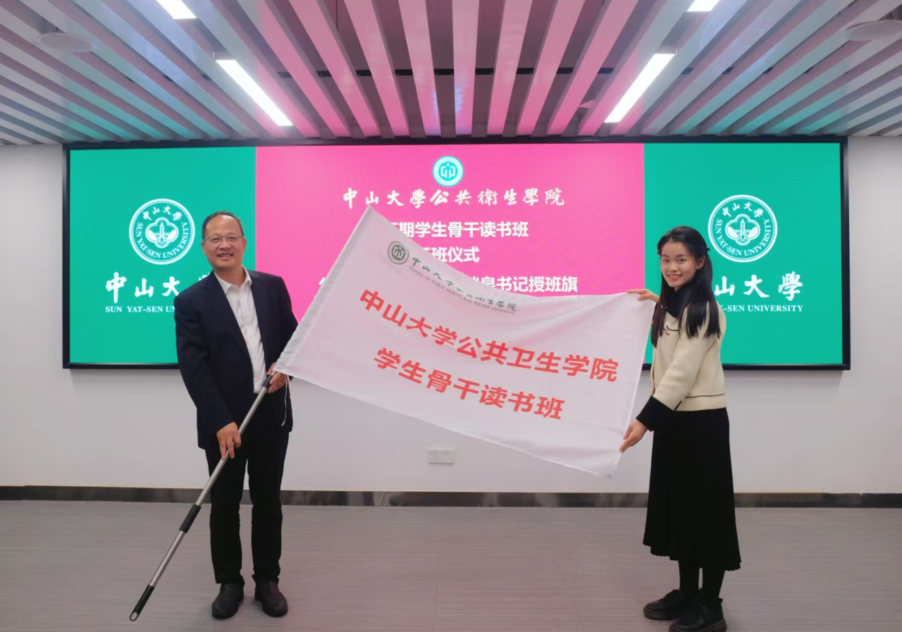 随后,范瑞泉书记为本期学生骨干读书班授班旗。