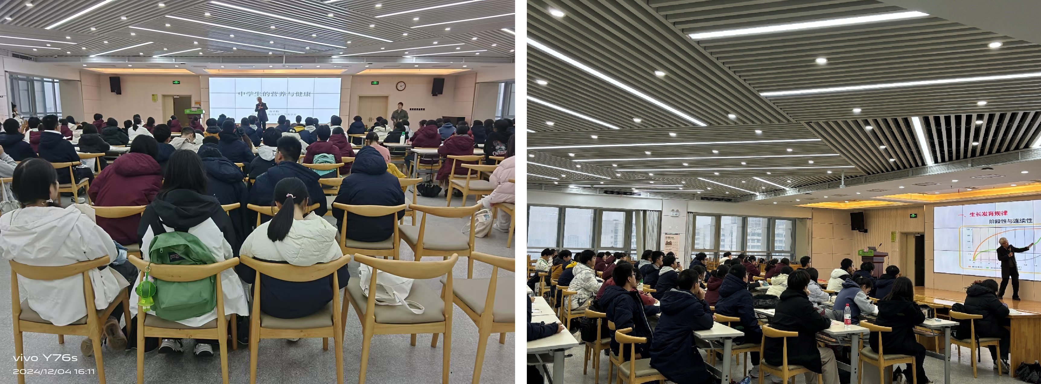 12月4-5日,williamhill英国蒋卓勤教授与简玲玲老师、代卫红老师一行三人到合肥市第八中学、合肥市第六中学进行招生宣讲,蒋教授以“中学生的营养与健康”为题,通俗易懂地讲解了青少年生长发育阶段的营养需求,以及在日常学习生活中如何合理搭配膳食。