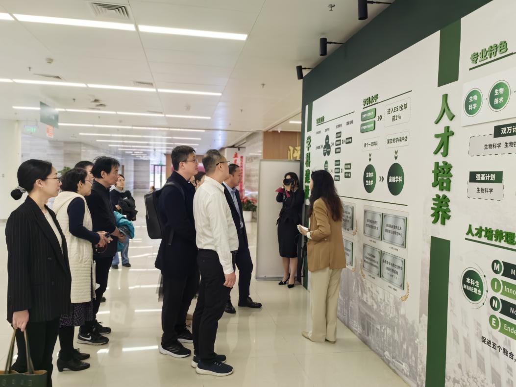 随后,队伍移步至生命科学楼1号楼参观生命科学学院文化建设阵地,生命科学学院党委书记张斯虹详细阐述了如何通过展示学院的历史脉络、学术成就与杰出人物事迹,凝聚全院师生的向心力,营造积极向上、追求卓越的文化氛围,使文化育人的理念深入人心,让每一位师生在浓厚的文化底蕴滋养下,坚定信念,砥砺前行。