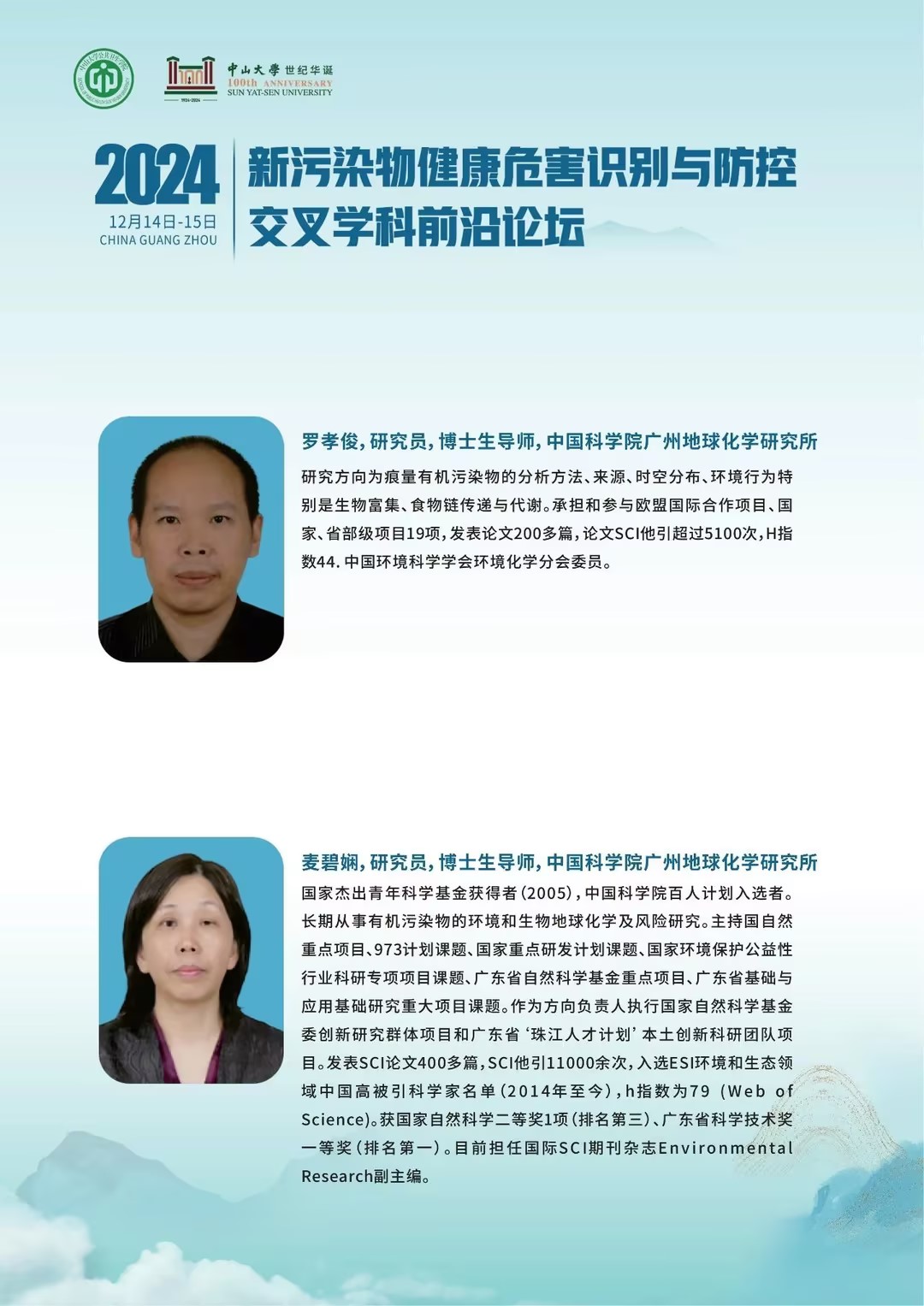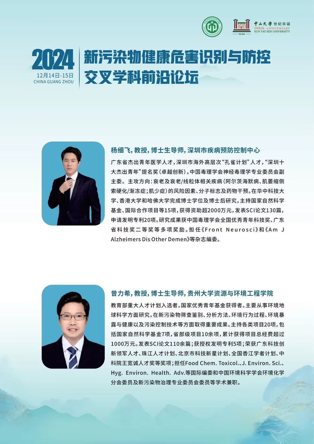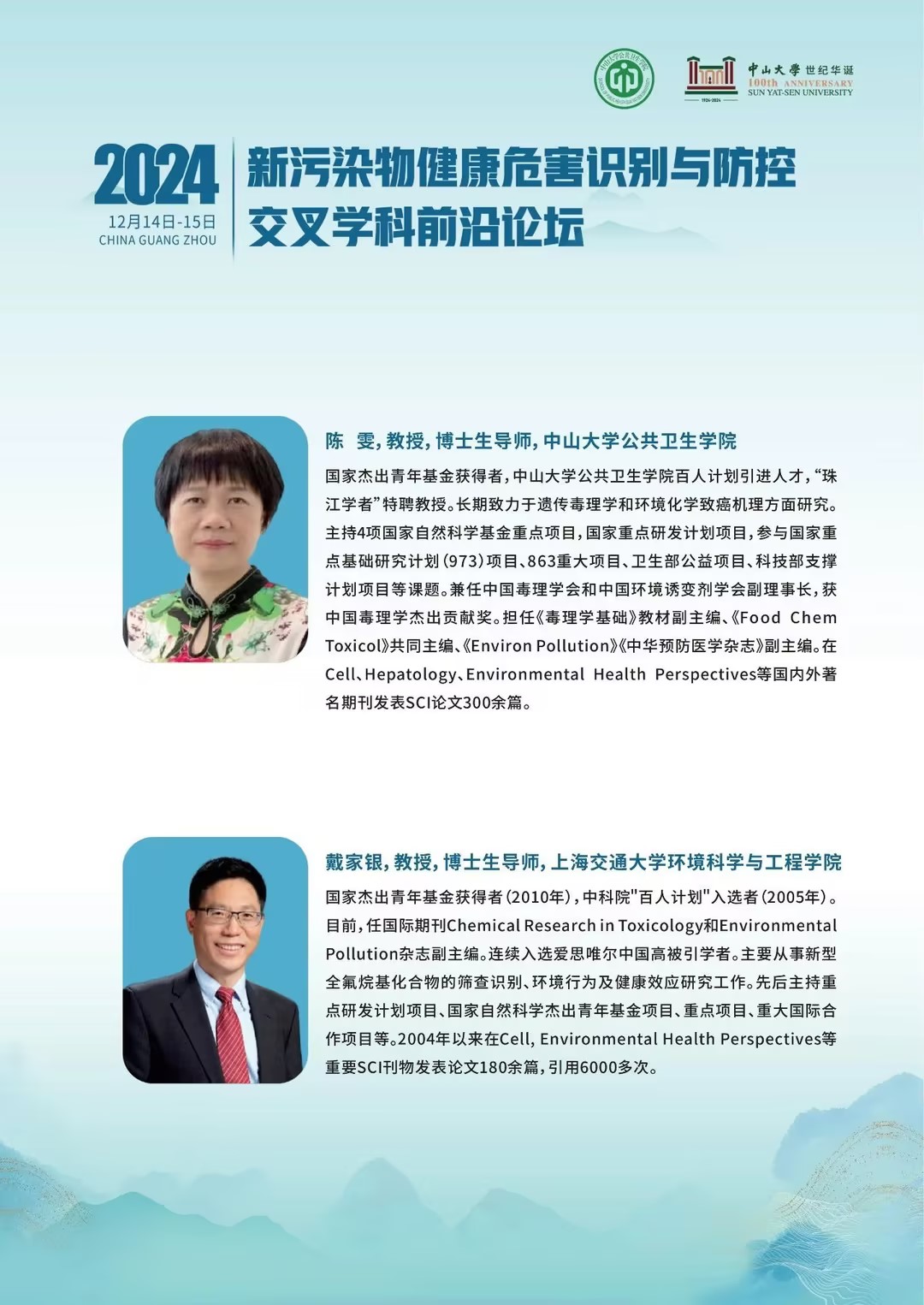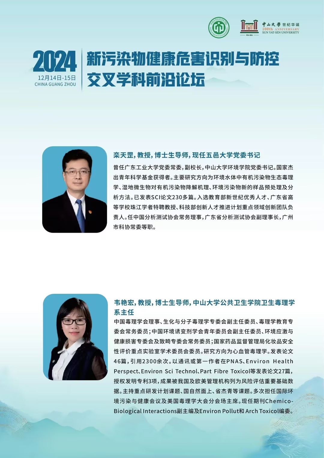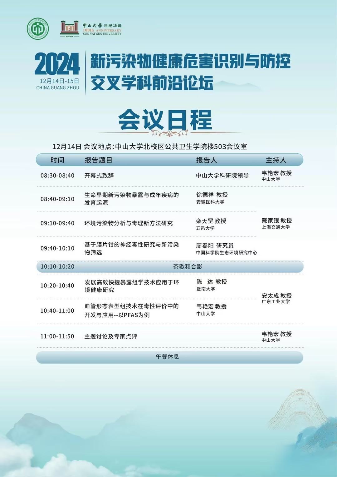 会议日程|新污染物健康危害识别与防控交叉学科前沿论坛(2024年12月14-15日,中国广州)