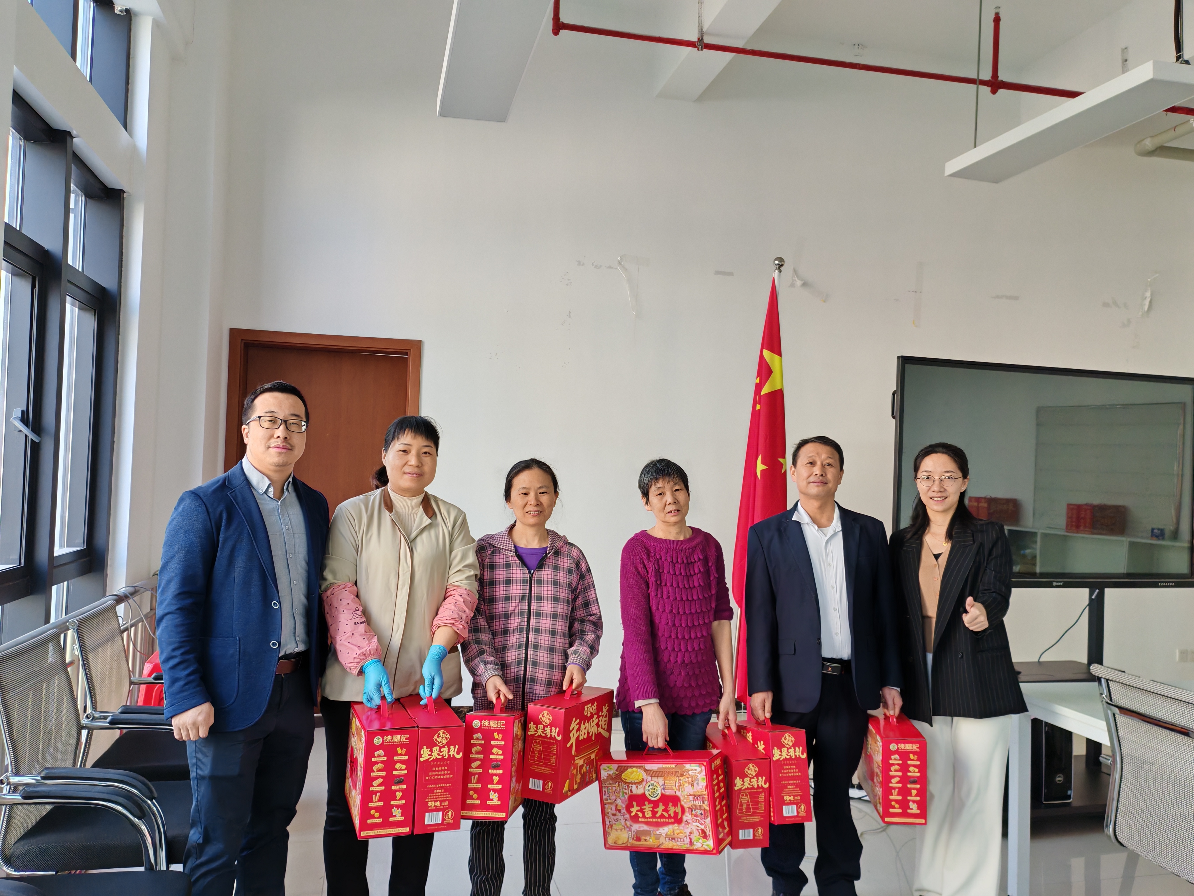 此外,学院不忘慰问为学院服务的保安、保洁人员,感谢他们一年来的辛勤付出,为学院师生创造了安全、整洁的学习和工作环境。学院工会主席杨博逸副教授、党政办主任陈霞为他们送上慰问品,叮嘱他们在工作中注意安全,送上新春祝福。