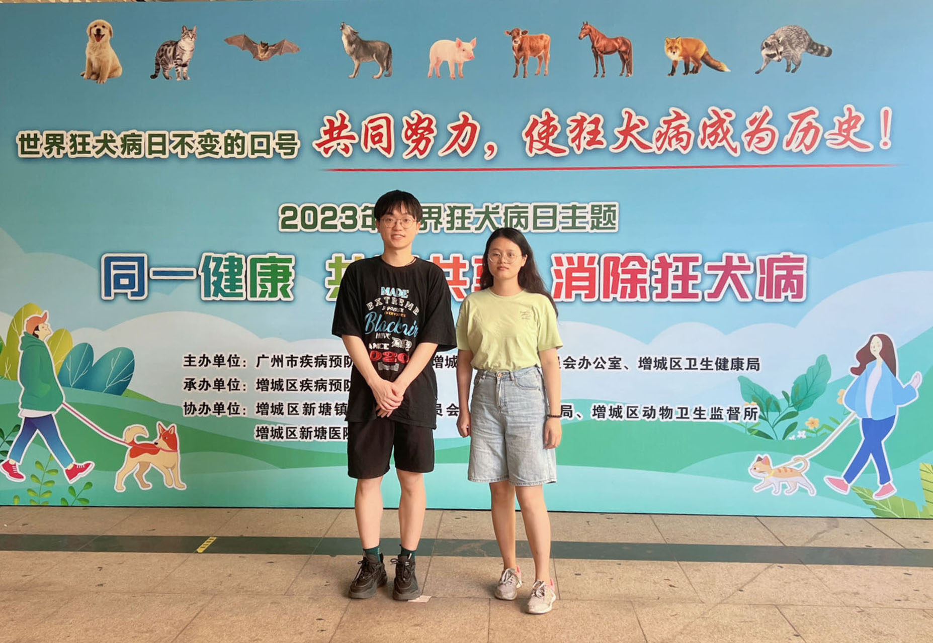 在2023年9月28日第17个世界狂犬病日活动中,他参与了广州市疾控组织的狂犬病防控宣传工作,协负责助分发资料、疫苗接种及秩序维护。通过实践,他进一步理解了狂犬病防控的重要性,掌握了动物免疫与现场防控的实际操作方法,也深刻认识到公共卫生在守护群体健康和防控疾病传播中的核心意义,增强了他的实践能力与社会责任感。