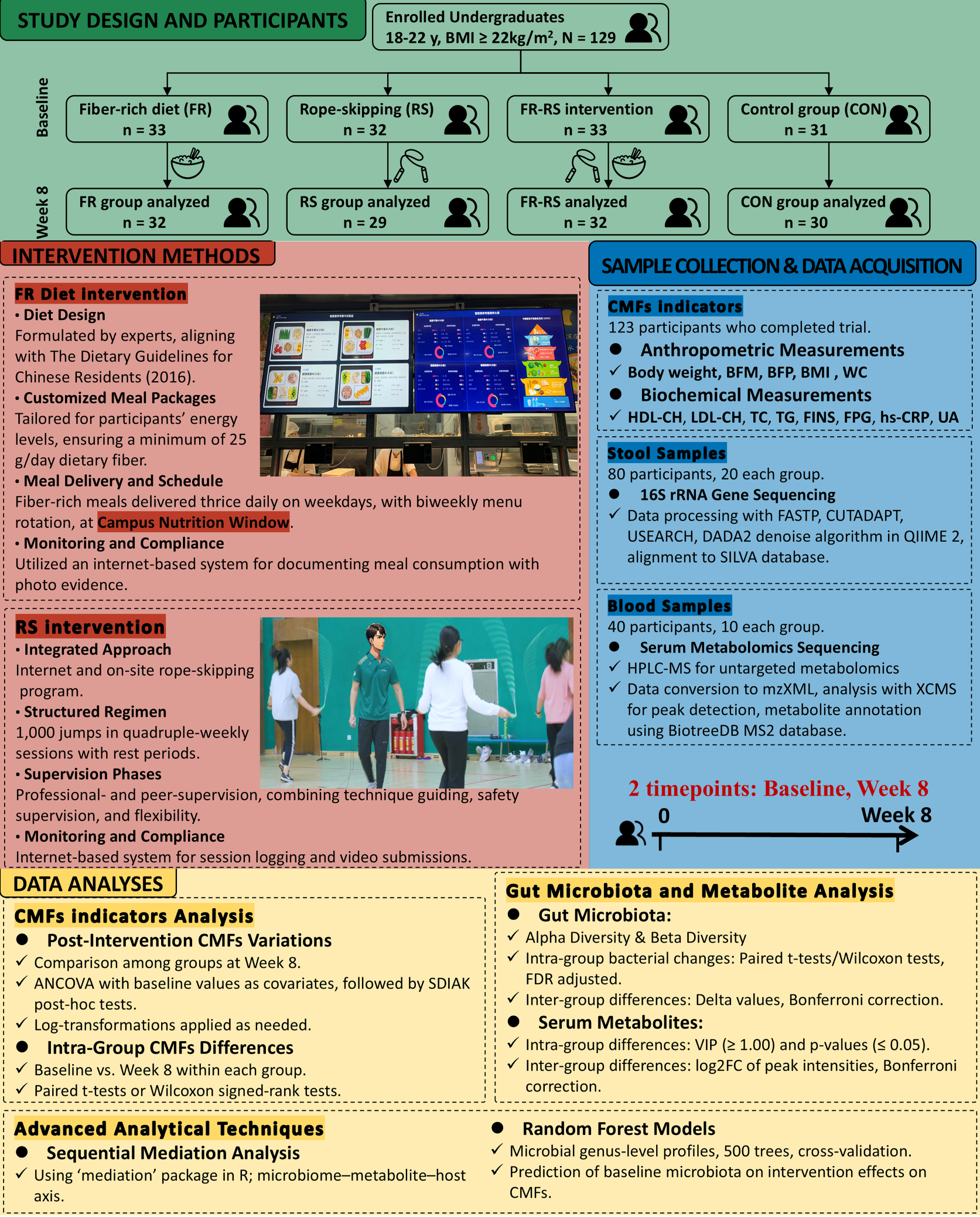 这些发现不仅揭示了肠道菌群及代谢物在饮食、运动干预中的关键作用,还为探索CMFs的个性化精准健康干预策略提供了科学依据,并强调了以肠道菌群特征为核心的干预设计在未来临床实践中的潜力。