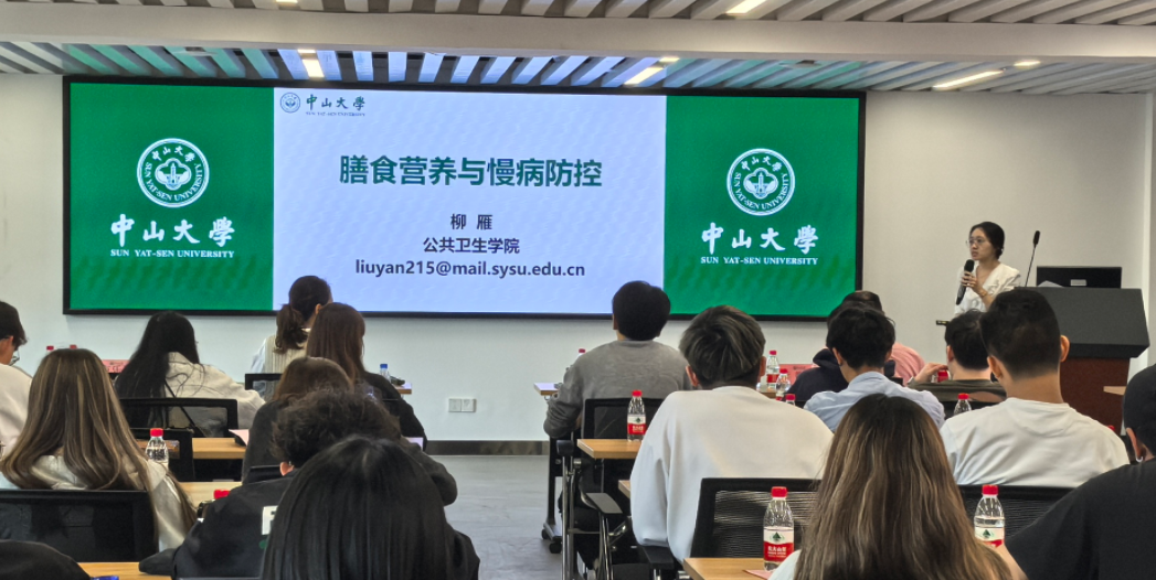 柳雁副教授基于慢性代谢性疾病与生活方式的关联性研究,剖析区域膳食差异导致的健康失衡现象,阐释DASH与EAT-Lancet等膳食模式干预在慢病防控中的科学优势,向在场师生生动地提出了合理饮食改善慢性疾病的营养建议。